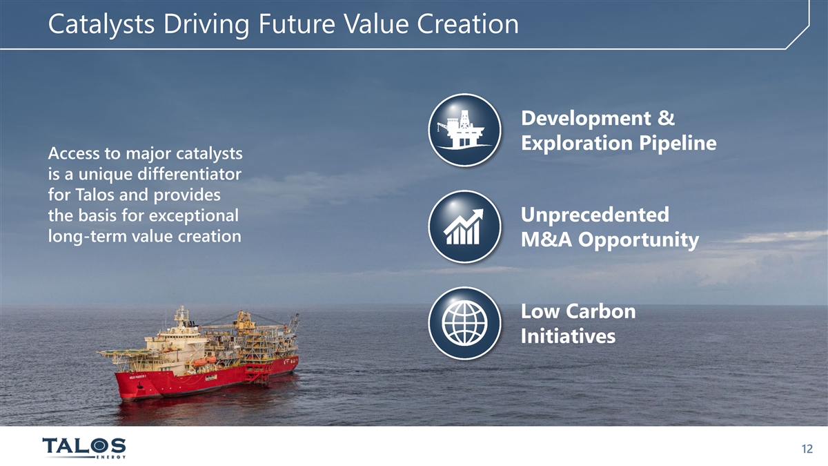 Catalysts Driving Future Value Creation Development & Exploration Pipeline Access to major catalysts is a unique differentiator for Talos and provides the basis for exceptional Unprecedented long-term value creation M&A Opportunity Low Carbon Initiatives 12