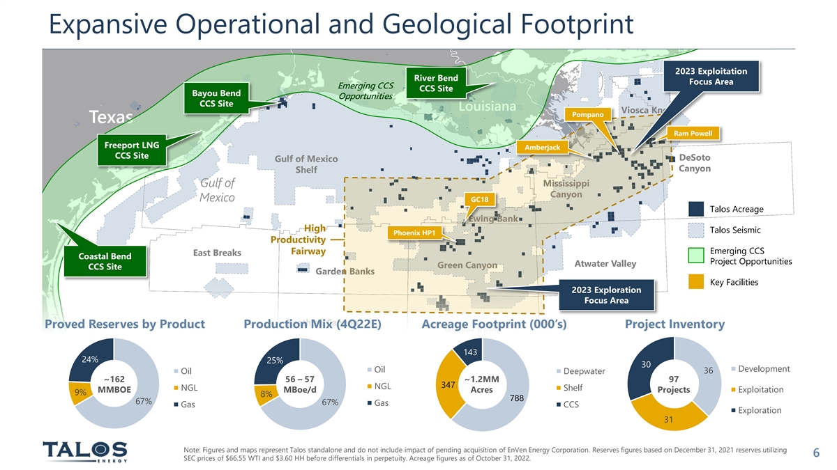 Expansive Operational and Geological Footprint 2023 Exploitation River Bend Focus Area Emerging CCS CCS Site Bayou Bend Opportunities CCS Site Pompano Ram Powell Freeport LNG Amberjack CCS Site GC18 Talos Acreage High Talos Seismic Phoenix HP1 Productivity Fairway Emerging CCS Coastal Bend Project Opportunities CCS Site Key Facilities 2023 Exploration Focus Area Proved Reserves by Product Production Mix (4Q22E) Acreage Footprint (000’s) Project Inventory 143 24% 25% 30 Development Oil 36 Oil Deepwater ~162 56 – 57 ~1.2MM 97 347 NGL NGL Shelf MMBOE MBoe/d Acres Projects Exploitation 9% 8% 788 67% 67% Gas Gas CCS Exploration 31 Note: Figures and maps represent Talos standalone and do not include impact of pending acquisition of EnVen Energy Corporation. Reserves figures based on December 31, 2021 reserves utilizing 6 SEC prices of $66.55 WTI and $3.60 HH before differentials in perpetuity. Acreage figures as of October 31, 2022.