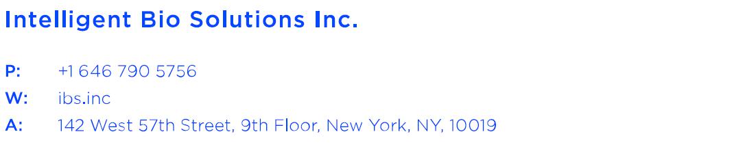 Some of the statements in this release are forward-looking statements within the meaning of Section 27A of the Securities Act of 1933, Section 21E of the Securities Exchange Act of 1934 and the Private Securities Litigation Reform Act of 1995, which involve risks and uncertainties. Forward-looking statements in this press release include, without limitation, Intelligent Bio Solutions Inc.’s ability to successfully develop and commercialize its drug and diagnostic tests, realize commercial benefit from its partnerships and collaborations, and secure regulatory approvals, among others. Although Intelligent Bio Solutions Inc. believes that the expectations reflected in such forward-looking statements are reasonable as of the date made, expectations may prove to have been materially different from the results expressed or implied by such forward-looking statements. Intelligent Bio Solutions Inc. has attempted to identify forward-looking statements by terminology, including “believes,” “estimates,” “anticipates,” “expects,” “plans,” “projects,” “intends,” “potential,” “may,” “could,” “might,” “will,” “should,” “approximately” or other words that convey uncertainty of future events or outcomes to identify these forward-looking statements. These statements are only predictions and involve known and unknown risks, uncertainties, and other factors, included in Intelligent Bio Solutions’ public filings filed with the Securities and Exchange Commission. Any forward-looking statements contained in this release speak only as of its date. Intelligent Bio Solutions undertakes no obligation to update any forward-looking statements contained in this release to reflect events or circumstances occurring after its date or to reflect the occurrence of unanticipated events.