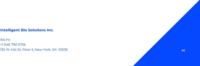 Some of the statements in this release are forward-looking statements within the meaning of Section 27A of the Securities Act of 1933, Section 21E of the Securities Exchange Act of 1934 and the Private Securities Litigation Reform Act of 1995, which involve risks and uncertainties. Forward-looking statements in this press release include, without limitation, Intelligent Bio Solutions Inc.’s ability to successfully develop and commercialize its drug and diagnostic tests, realize commercial benefit from its partnerships and collaborations, and secure regulatory approvals, among others. Although Intelligent Bio Solutions Inc. believes that the expectations reflected in such forward-looking statements are reasonable as of the date made, expectations may prove to have been materially different from the results expressed or implied by such forward-looking statements. Intelligent Bio Solutions Inc. has attempted to identify forward-looking statements by terminology, including “believes,” “estimates,” “anticipates,” “expects,” “plans,” “projects,” “intends,” “potential,” “may,” “could,” “might,” “will,” “should,” “approximately” or other words that convey uncertainty of future events or outcomes to identify these forward-looking statements. These statements are only predictions and involve known and unknown risks, uncertainties, and other factors, included in Intelligent Bio Solutions’ public filings filed with the Securities and Exchange Commission. Any forward-looking statements contained in this release speak only as of its date. Intelligent Bio Solutions undertakes no obligation to update any forward-looking statements contained in this release to reflect events or circumstances occurring after its date or to reflect the occurrence of unanticipated events.