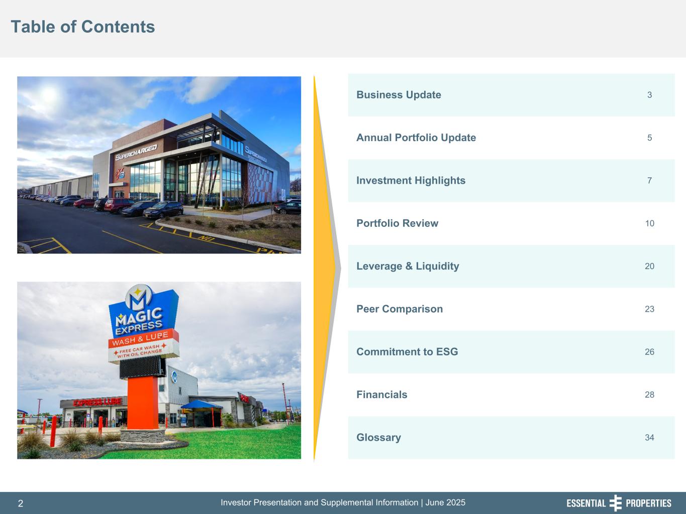 Investor Presentation and Supplemental Information | June 20252 254, 192, 59 75, 108, 127 146, 204, 238 0, 0, 0 38, 169, 224 153, 223, 227 Table of Contents 242, 242, 242 Business Update 3 Annual Portfolio Update 5 Investment Highlights 7 Portfolio Review 10 Leverage & Liquidity 20 Peer Comparison 23 Commitment to ESG 26 Financials 28 Glossary 34