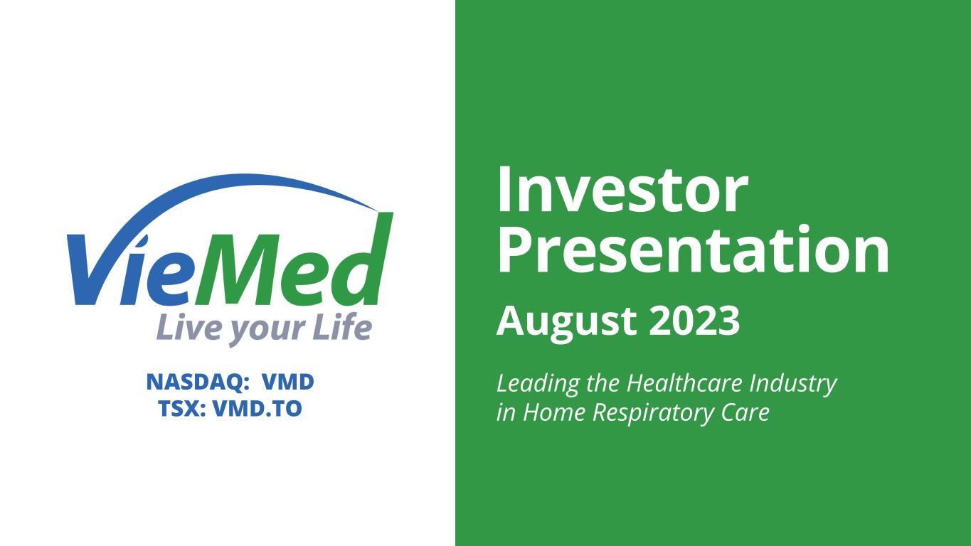 Investor Presentation Leading the Healthcare Industry in Home Respiratory Care NASDAQ: VMD TSX: VMD.TO August 2023