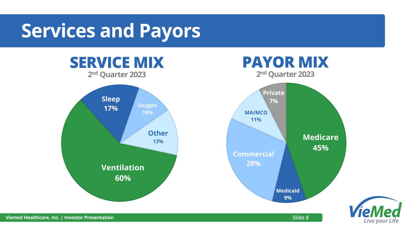 Services and Payors Viemed Healthcare, Inc. | Investor Presentation Ventilation 60% Sleep 17% Oxygen 10% Other 13% Medicare 45% Medicaid 9% Commercial 28% MA/MCO 11% Private 7% SERVICE MIX 2nd Quarter 2023 PAYOR MIX 2nd Quarter 2023 Slide 8