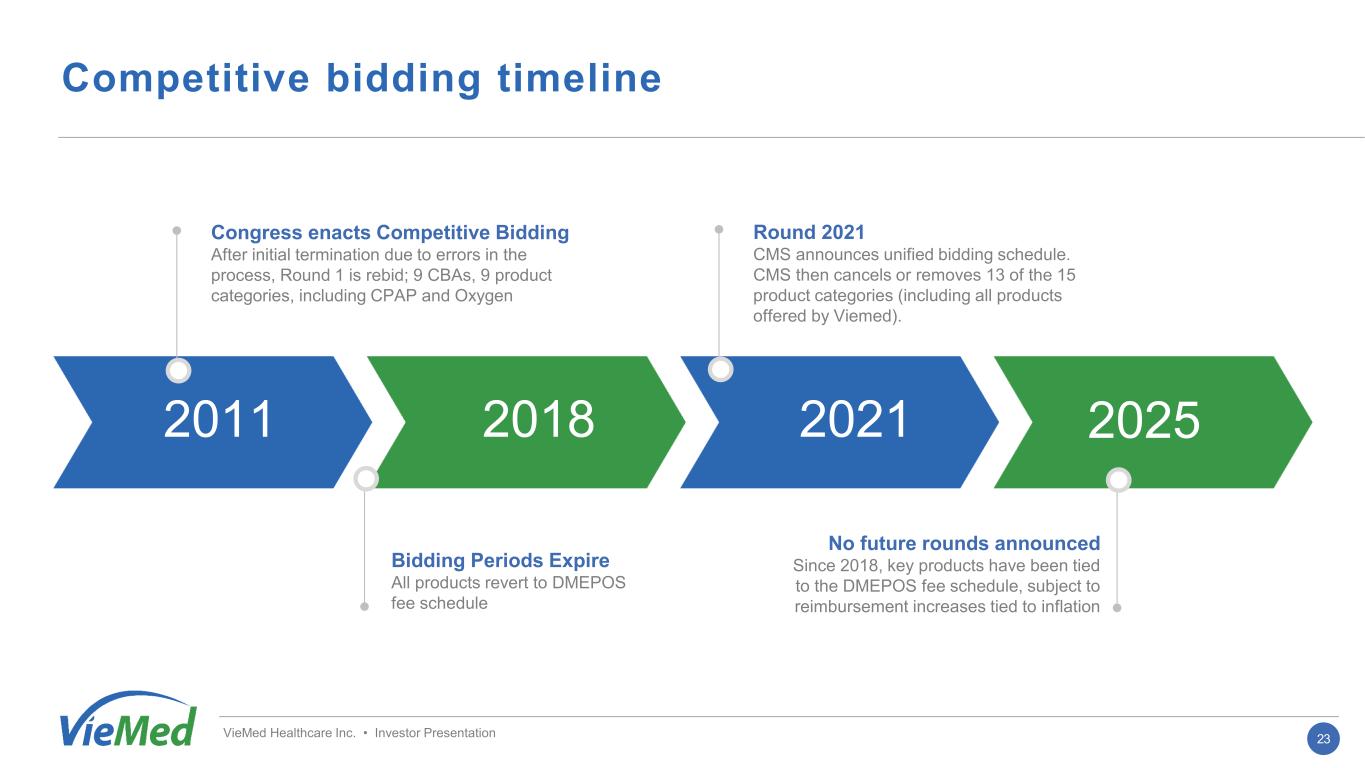 VieMed Healthcare Inc. • Investor Presentation Complex Respiratory 73% of Revenue Ventilators CPAP Bi-Level At-Home Sleep Testing Percussion Vests Tankless Oxygen Therapy Sleep Therapy 16% of Revenue 22 Devices and equipment