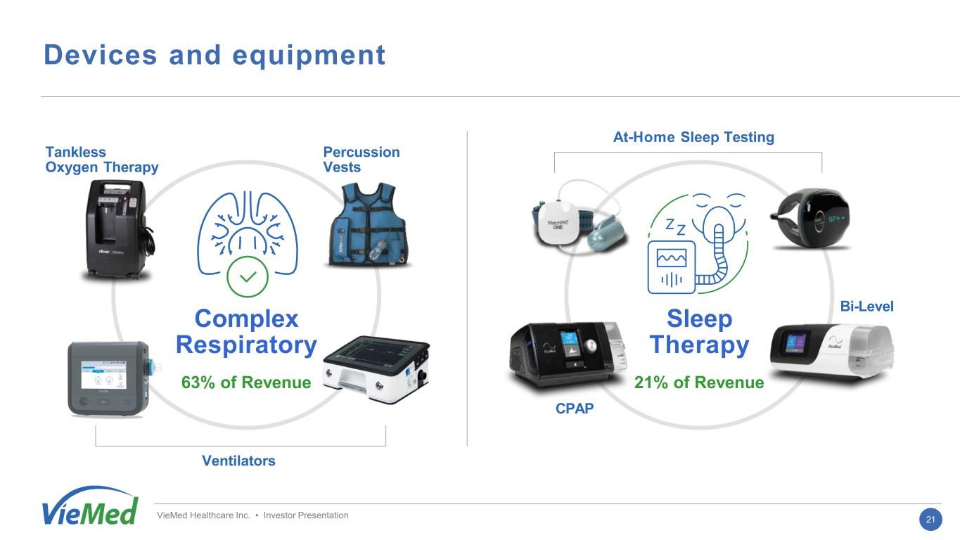 VieMed Healthcare Inc. • Investor Presentation Complex Respiratory 63% of Revenue Ventilators CPAP Bi-Level At-Home Sleep Testing Percussion Vests Tankless Oxygen Therapy Sleep Therapy 21% of Revenue 21 Devices and equipment