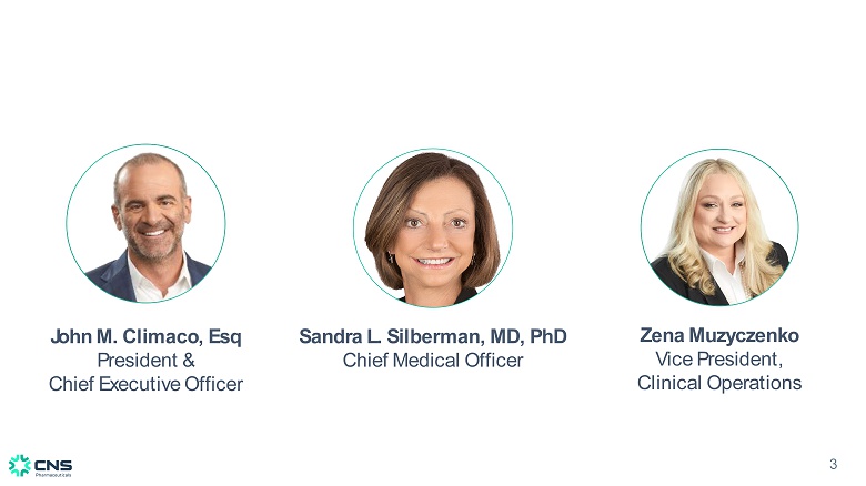 3 John M. Climaco, Esq President & Chief Executive Officer Sandra L. Silberman, MD, PhD Chief Medical Officer Zena Muzyczenko Vice President, Clinical Operations