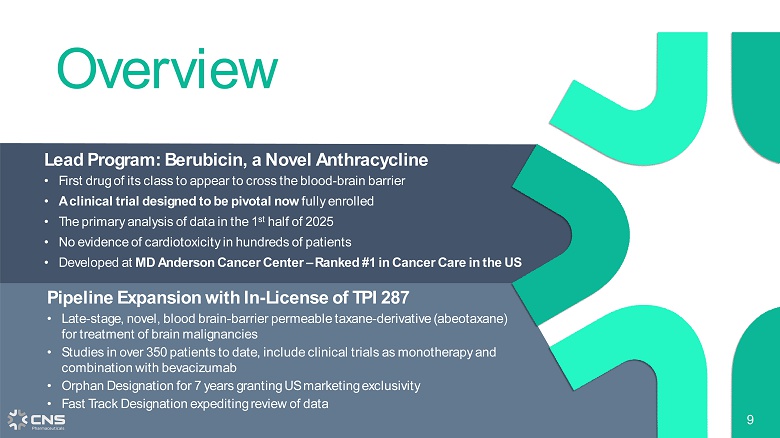 8 CNS Pharma Overview John M. Climaco, Esq President & Chief Executive Officer
