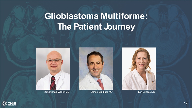 12 Glioblastoma Multiforme: The Patient Journey Prof. Michael Weller, MD Samuel Goldlust, MD Erin Dunbar, MD