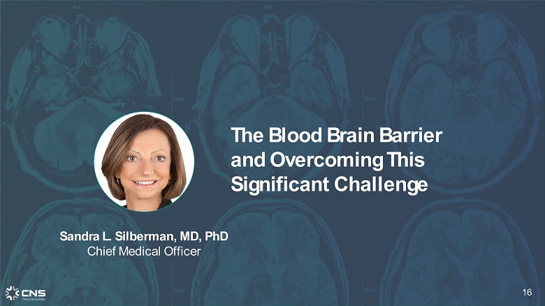 16 The Blood Brain Barrier and Overcoming This Significant Challenge Sandra L. Silberman, MD, PhD Chief Medical Officer