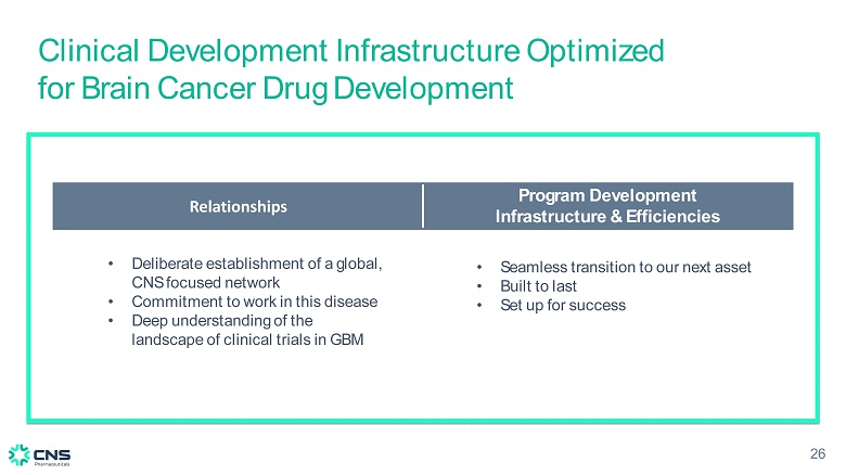 25 Established Clinical Global Infrastructure and Network Zena Muzyczenko Vice President, Clinical Operations