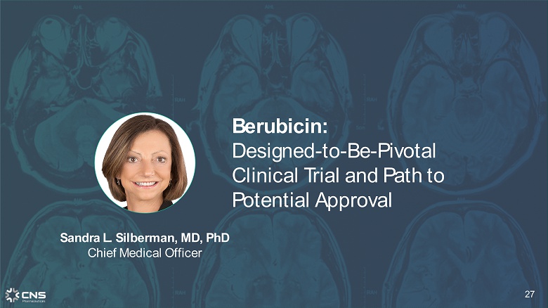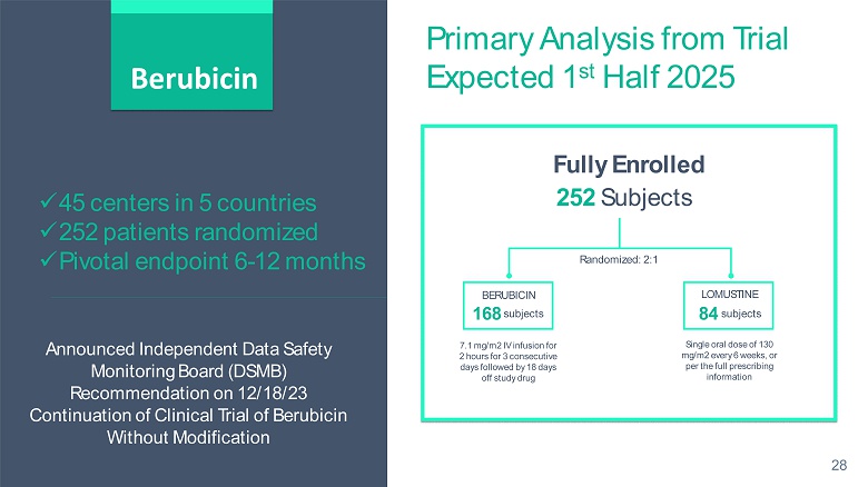 27 Berubicin: Designed - to - Be - Pivotal Clinical Trial and Path to Potential Approval Sandra L. Silberman, MD, PhD Chief Medical Officer