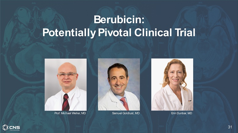 31 Berubicin: Potentially Pivotal Clinical Trial Prof. Michael Weller, MD Samuel Goldlust, MD Erin Dunbar, MD