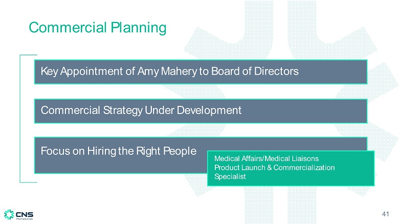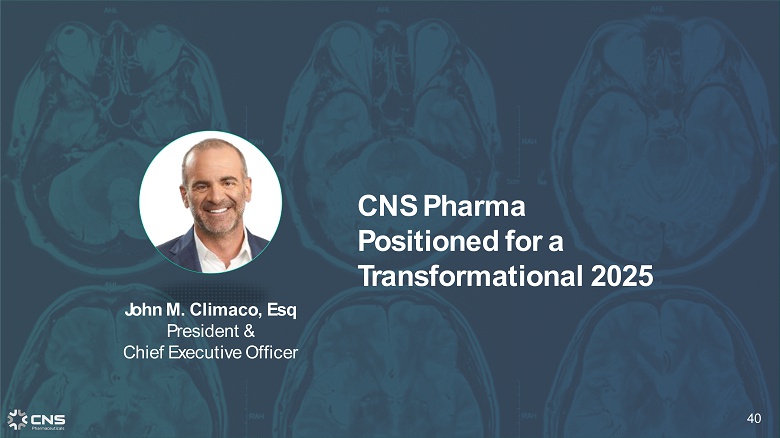 40 CNS Pharma Positioned for a Transformational 2025 John M. Climaco, Esq President & Chief Executive Officer