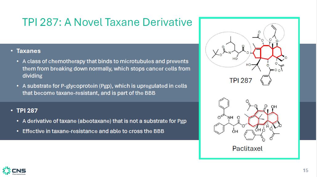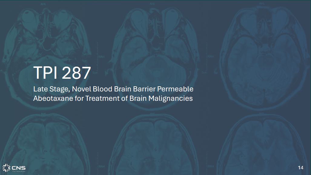 TPI 287 Late Stage, Novel Blood Brain Barrier Permeable Abeotaxane for Treatment of Brain Malignancies 14