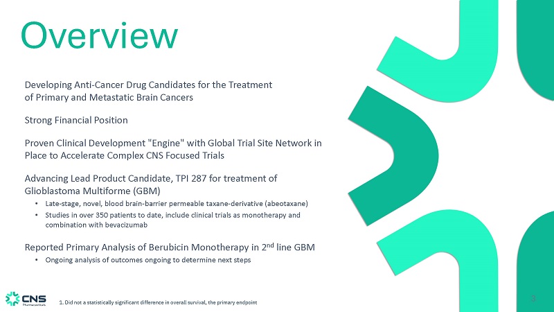 2 Forward Looking Statements This presentation incorporates information from materials filed with the SEC and contains forward - looking statements. All statements contained herein other than statements of historical fact, including statements regarding our future results of operations and financial position, our business strategy and plans, and our objectives for future operations, are forward - looking statements. The words “believe,” “may,” “will,” “estimate,” “continue,” “anticipate,” “intend,” “expect,” and similar expressions are intended to identify forward looking statements. We have based these forward - looking statements largely on our current expectations and projections about future events and trends that we believe may affect our financial condition, results of operations, business strategy, short - term and long - term business operations and objectives, and financial needs. These forward - looking statements are subject to a number of risks, uncertainties and assumptions, including those described in the “Risk Factors” section of most recent Form 10 - K as updated by any subsequent Form 10 - Q filings. It is not possible for our management to predict all risks, nor can we assess the impact of all factors on our business or the extent to which any factor, or combination of factors, may cause actual results to differ materially from those contained in any forward - looking statements we may make. In light of these risks, uncertainties and assumptions, the future events and trends discussed in this presentation may not occur and actual results could differ materially and adversely from those anticipated or implied in the forward looking statements.