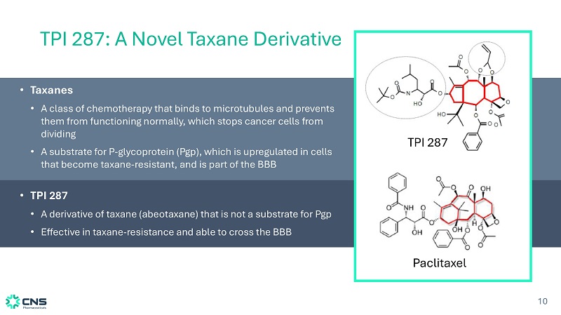 9 TPI 287 Late Stage, Novel Blood Brain Barrier Permeable Abeotaxane for Treatment of Brain Malignancies