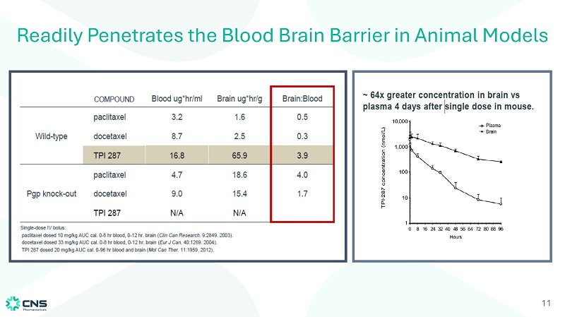 11 Readily Penetrates the Blood Brain Barrier in Animal Models