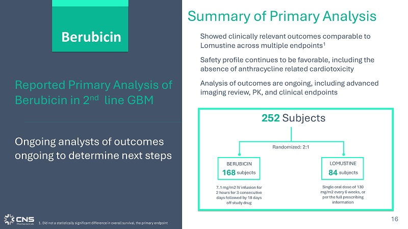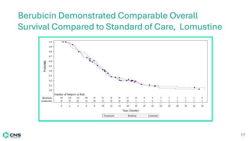 Berubicin Demonstrated Comparable Overall Survival Compared to Standard of Care, Lomustine 17