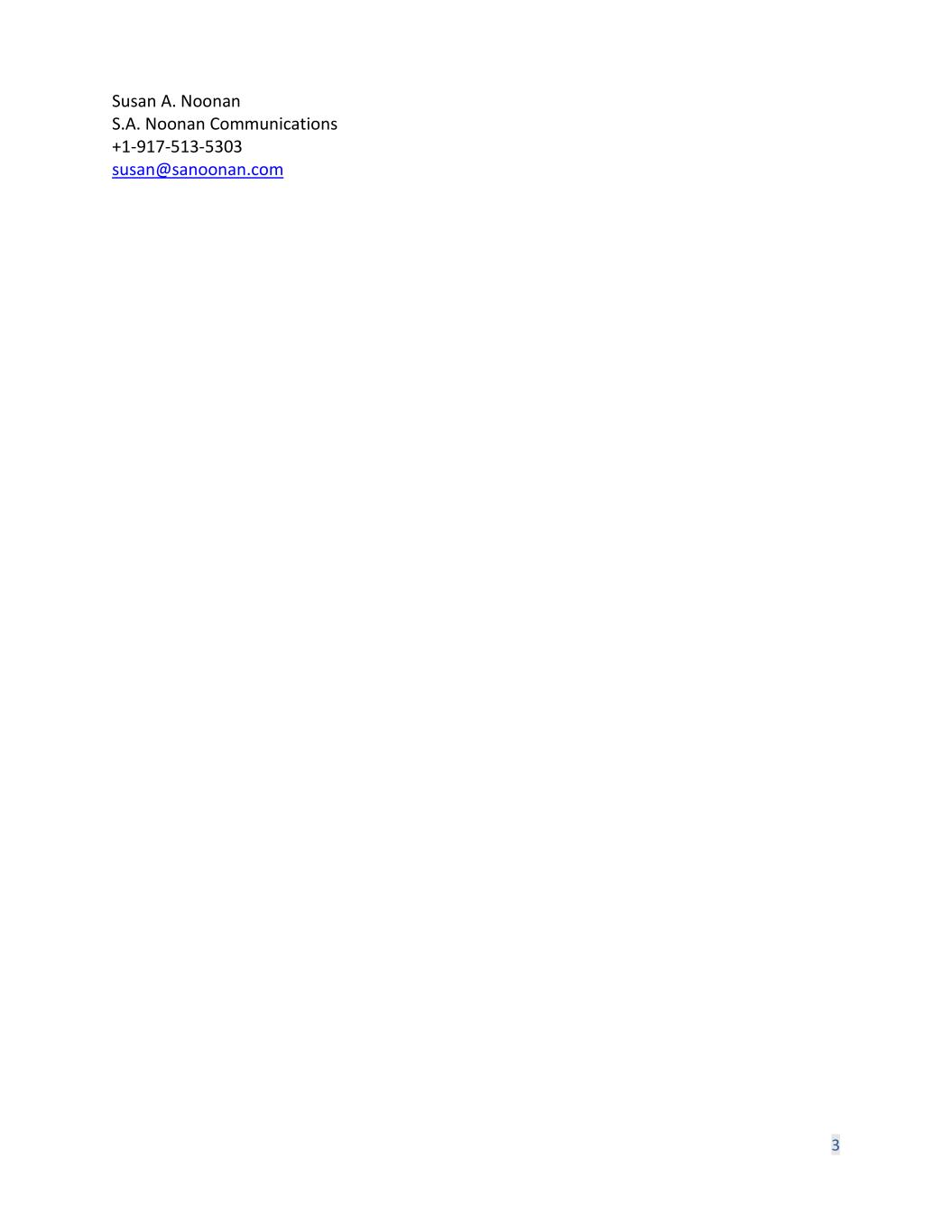 3 Susan A. Noonan S.A. Noonan Communications +1-917-513-5303 susan@sanoonan.com