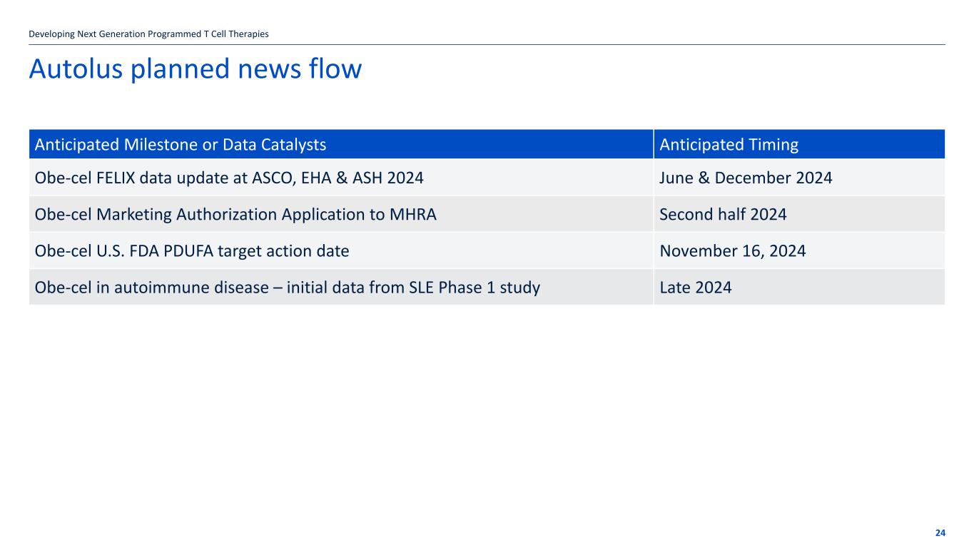 Q1 2024 Financial Results and Business Updates 17 May 2024 Autolus.com