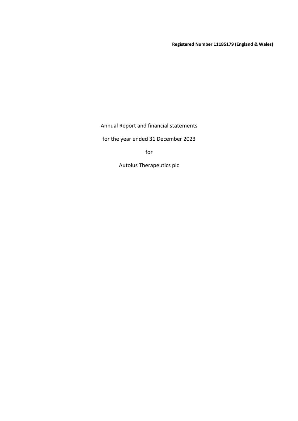 Registered Number 11185179 (England & Wales) Annual Report and financial statements for the year ended 31 December 2023 for Autolus Therapeutics plc
