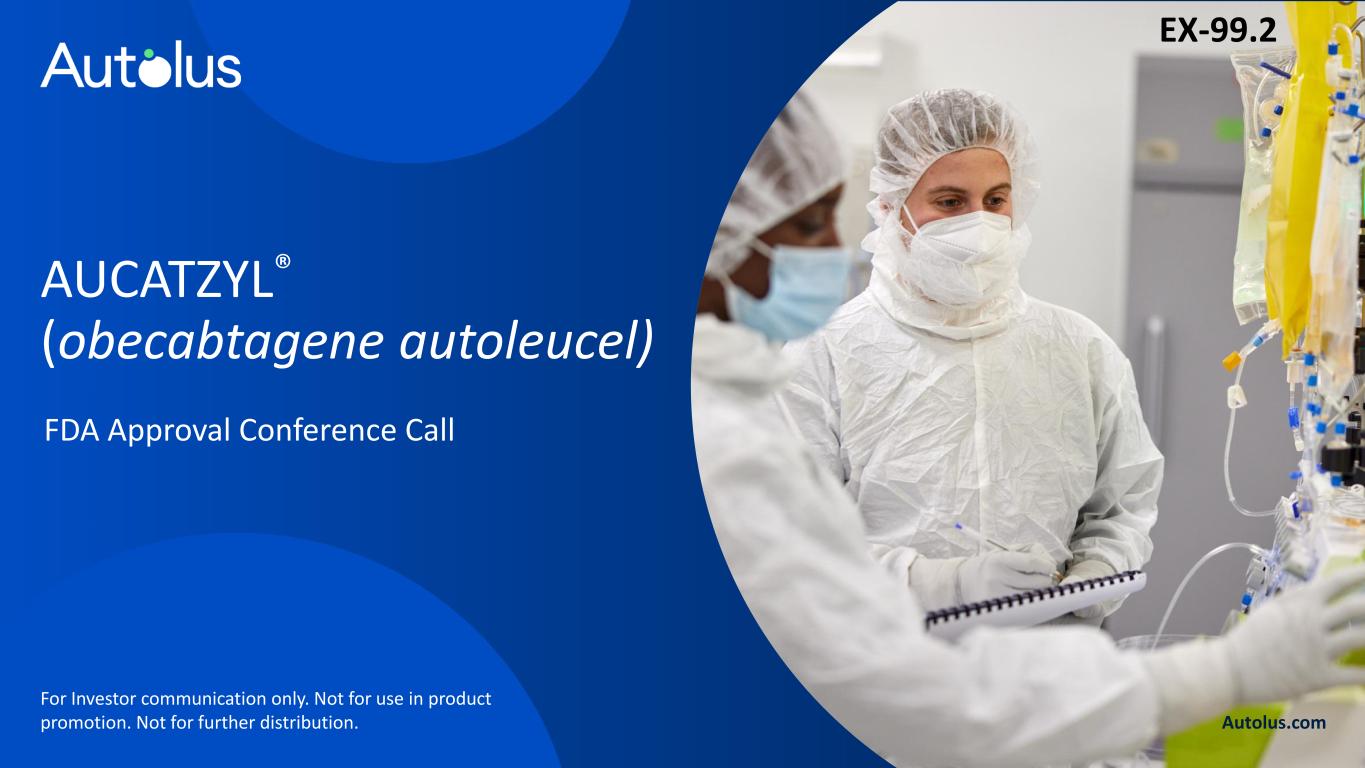 Autolus.com FDA Approval Conference Call AUCATZYL® (obecabtagene autoleucel) For Investor communication only. Not for use in product promotion. Not for further distribution. EX-99.2