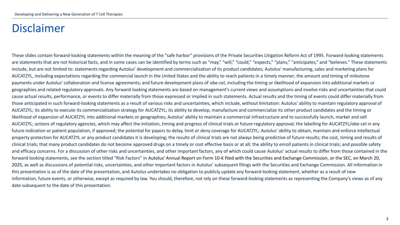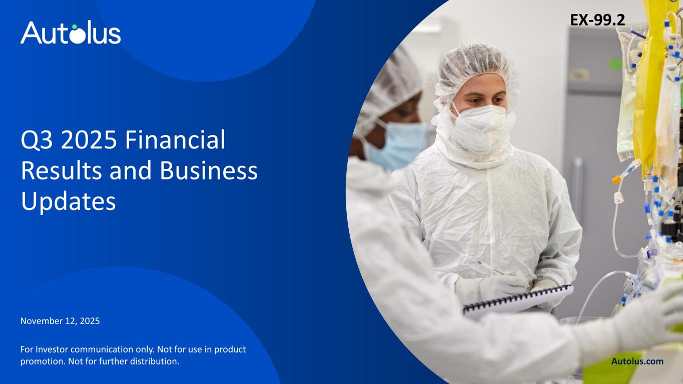 Q3 2025 Financial Results and Business Updates November 12, 2025 Autolus.com For Investor communication only. Not for use in product promotion. Not for further distribution. EX-99.2