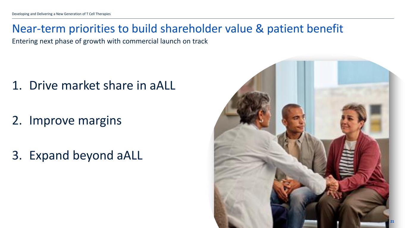 If the title goes over more than one line move the subtitle text box down by 1.15cm per additional line Near-term priorities to build shareholder value & patient benefit 1. Drive market share in aALL 2. Improve margins 3. Expand beyond aALL Developing and Delivering a New Generation of T Cell Therapies 21 Entering next phase of growth with commercial launch on track