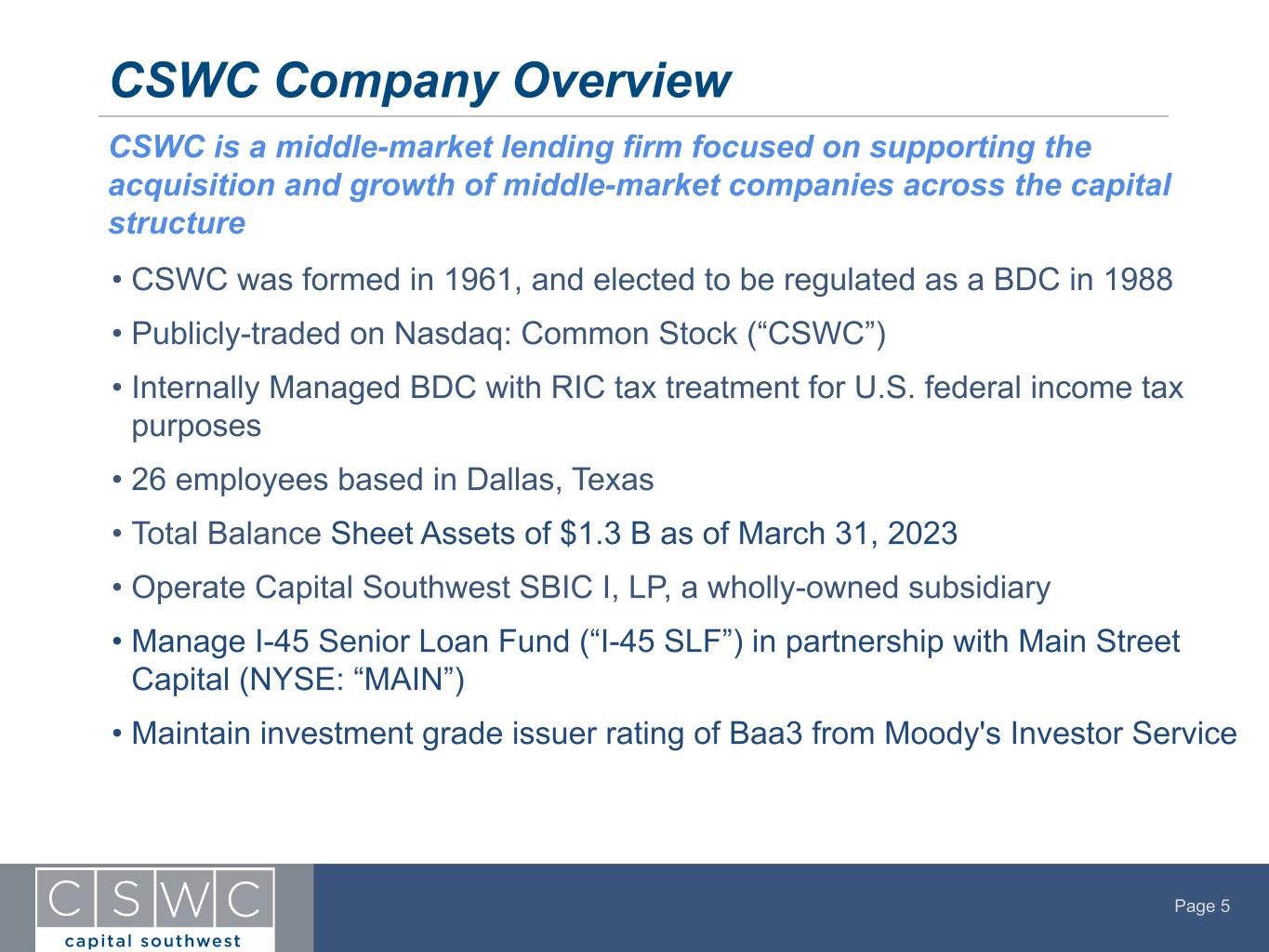 Q4 2023 Earnings Presentation 8333 Douglas Avenue, Suite 1100 | Dallas, Texas 75225 | 214.238.5700 | capitalsouthwest.com May 23, 2023 Capital Southwest Corporation