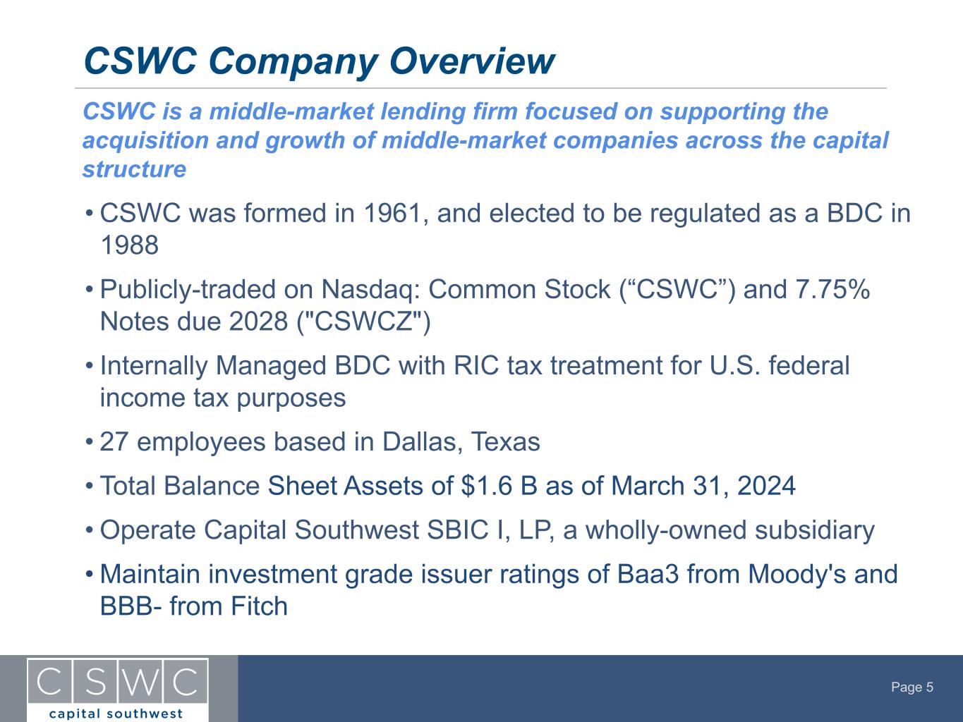 Q4 2024 Earnings Presentation 8333 Douglas Avenue, Suite 1100 | Dallas, Texas 75225 | 214.238.5700 | capitalsouthwest.com May 15, 2024 Capital Southwest Corporation