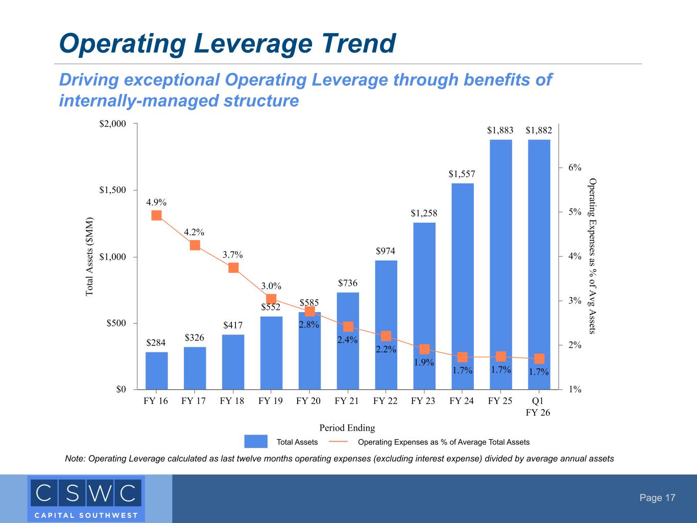Page 17 Operating Leverage Trend Driving exceptional Operating Leverage through benefits of internally-managed structure Period Ending To ta l A ss et s ( $M M ) O perating Expenses as % of A vg A ssets $284 $326 $417 $552 $585 $736 $974 $1,258 $1,557 $1,883 $1,882 4.9% 4.2% 3.7% 3.0% 2.8% 2.4% 2.2% 1.9% 1.7% 1.7% 1.7% FY 16 FY 17 FY 18 FY 19 FY 20 FY 21 FY 22 FY 23 FY 24 FY 25 Q1 FY 26 $0 $500 $1,000 $1,500 $2,000 1% 2% 3% 4% 5% 6% Total Assets Operating Expenses as % of Average Total Assets Note: Operating Leverage calculated as last twelve months operating expenses (excluding interest expense) divided by average annual assets