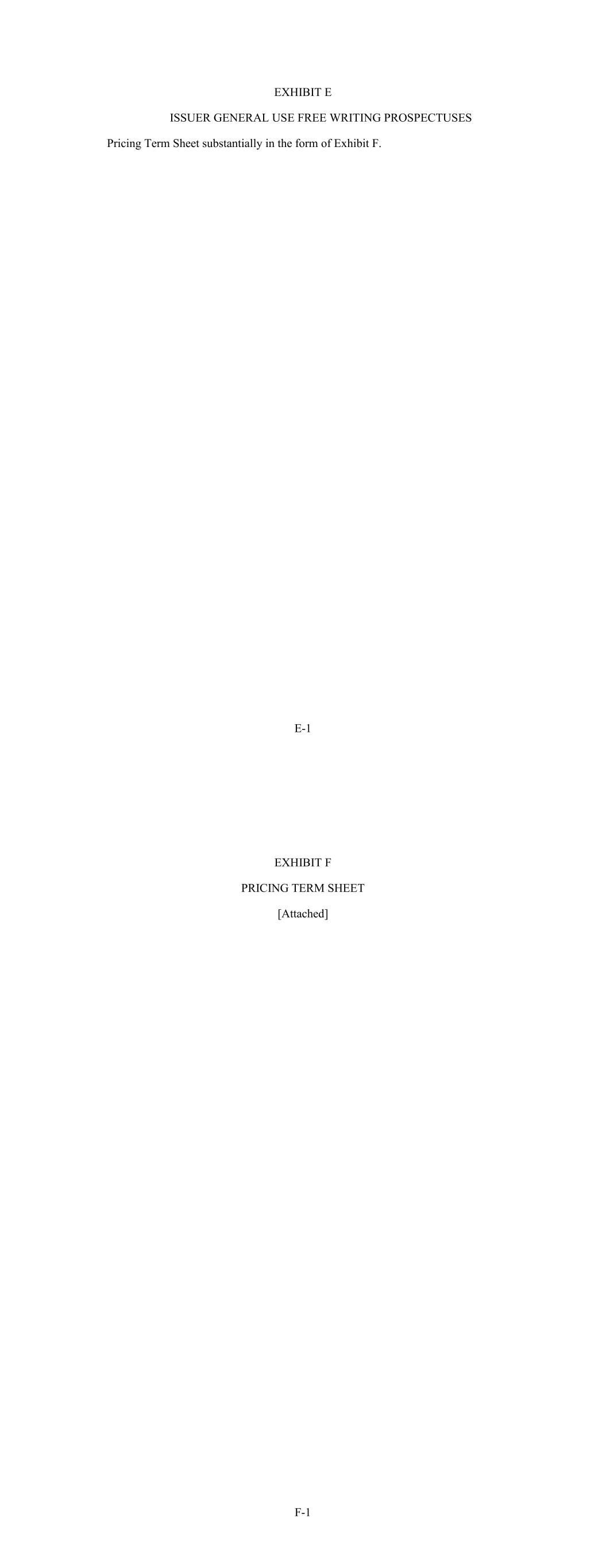 E-1 EXHIBIT E ISSUER GENERAL USE FREE WRITING PROSPECTUSES Pricing Term Sheet substantially in the form of Exhibit F. F-1 EXHIBIT F PRICING TERM SHEET [Attached]
