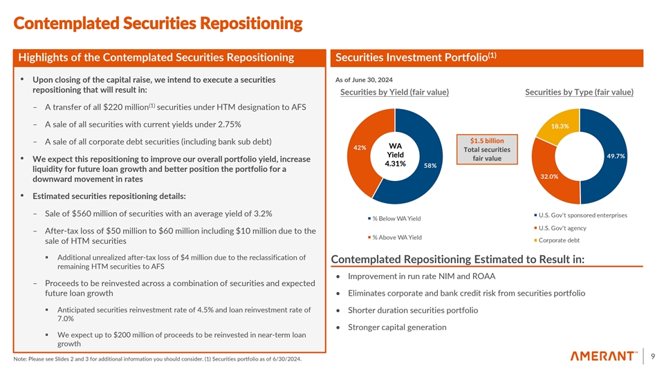 Exhibit 99.1 amerantbank.com Strategic Capital Raise September 2024