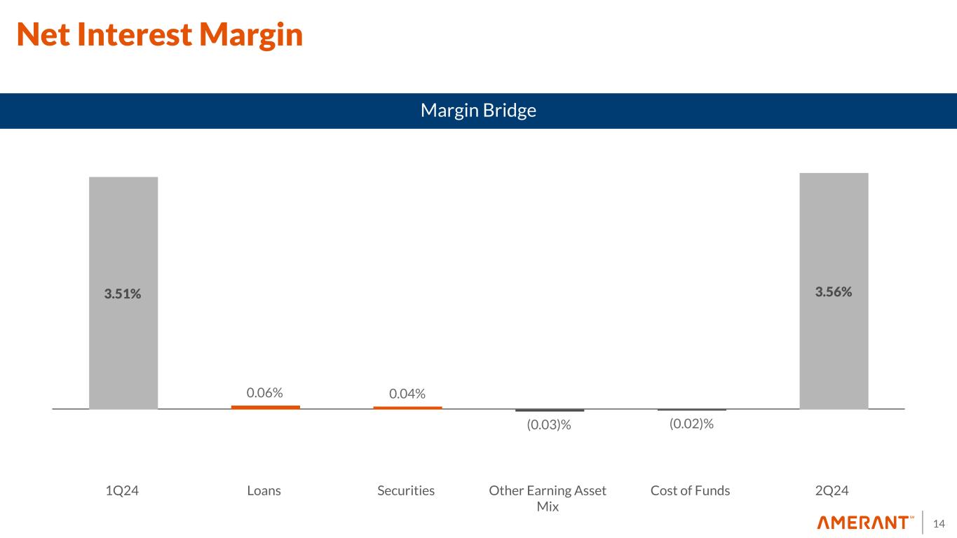 13 $83.9 $78.6 $81.7 $78.0 $79.4 3.83% 3.57% 3.72% 3.51% 3.56% Net Interest Income NIM 2Q23 3Q23 4Q23 1Q24 2Q24 0 10 20 30 40 50 60 70 80 NII and NIM (%) 13 ($ in millions) 2Q23 3Q23 4Q23 1Q24 2Q24 Cost of Deposits (Domestic) 3.19 % 3.49 % 3.71 % 3.78 % 3.74 % Cost of Deposits (International) 0.74 % 0.94 % 1.14 % 1.39 % 1.42 % Cost of FHLB Advances 3.69 % 4.07 % 3.89 % 3.48 % 3.79 % Cost of Funds 2.59 % 2.86 % 3.01 % 3.09 % 3.11 % 1.96 1.04 0.40 0.43 0.47 0.49 0.49 2Q23 3Q23 4Q23 1Q24 2Q24 0.00 2.00 0.00 1.00 Quarterly Beta*Cumulative Beta Net Interest Income and NIM Total Deposits Beta Evolution Cost of Funds N/AN/AN/A