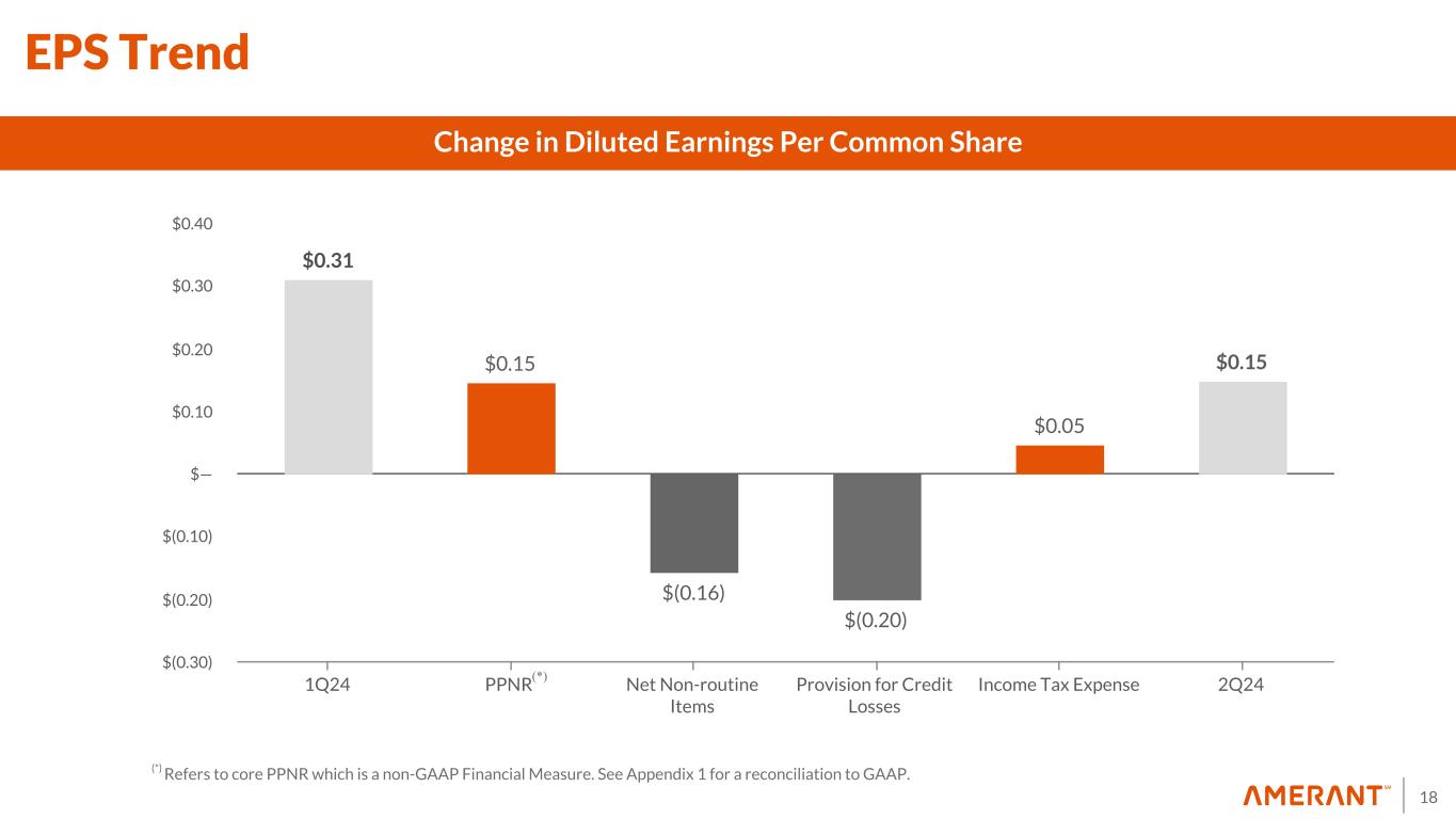 17 $72.5 $64.4 $109.7 $66.6 $73.3 $34.2 $31.3 $33.0 $33.0 $33.9 $38.3 $33.1 $76.7 $33.6 $39.4 710 700 682 696 720 2Q23 3Q23 4Q23 1Q24 2Q24 0 30 60 90 120 Non-Interest Expense Mix ($ in millions, except for FTEs) Non-routine Noninterest Expenses $13.4 $6.3 $43.1 $0.0 $5.6 $5.6 $5.6 $37.5 2Q23 3Q23 4Q23 1Q24 2Q24 0 10 20 30 40 50 ($ in millions) Non-Interest Expense Salaries and employee benefits Other operating expenses FTEs Other non-routine noninterest expenses Losses on loans held for sale carried at the lower cost or fair value $0.7 Fixed assets impairment $0.9 $1.3 $3.4