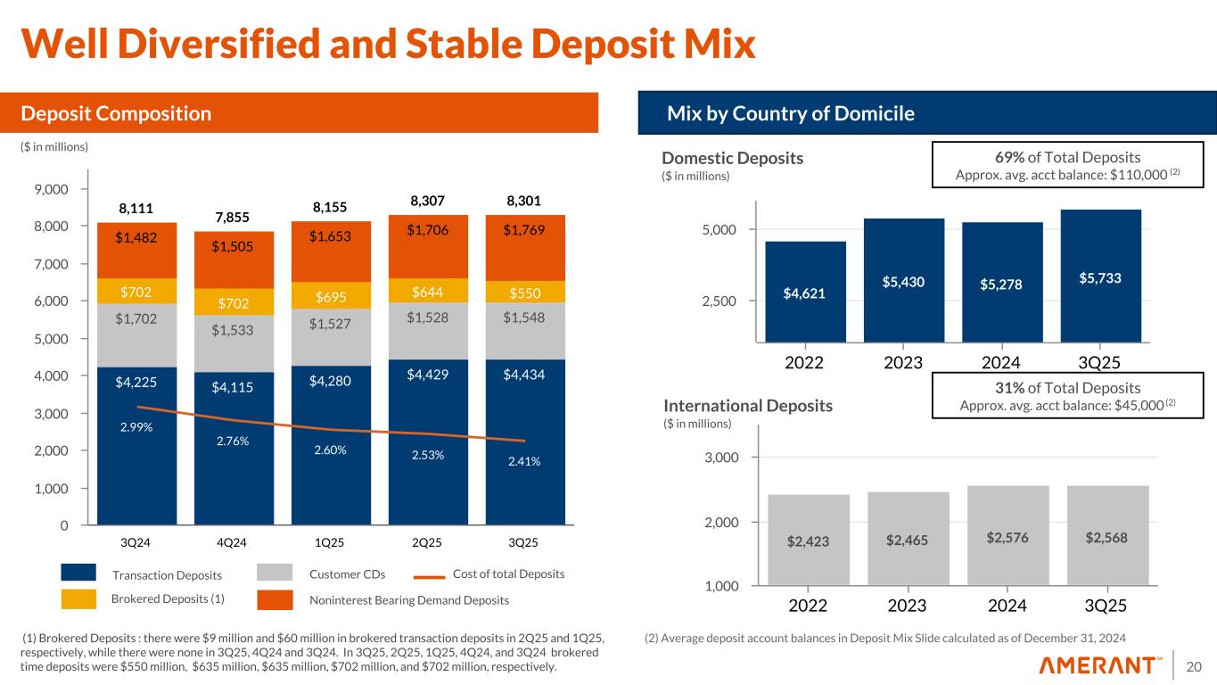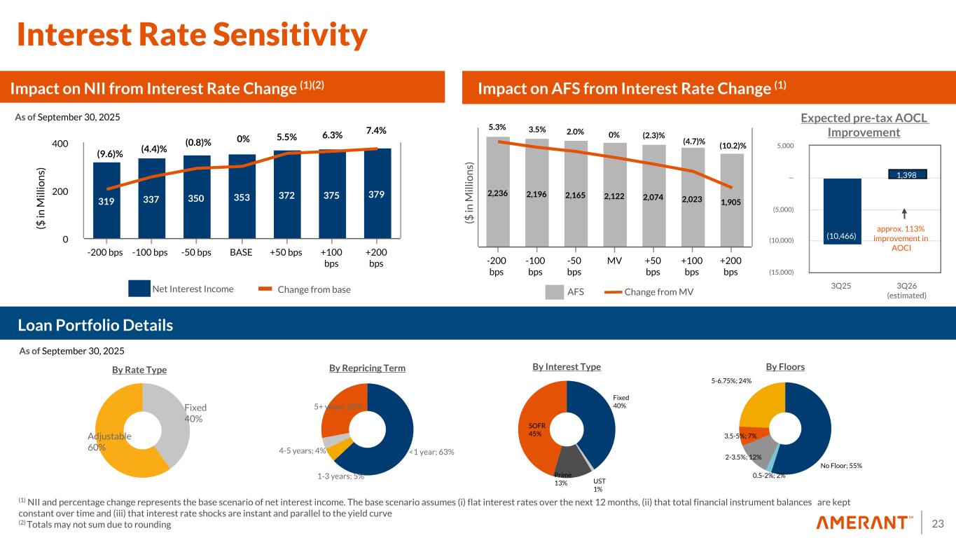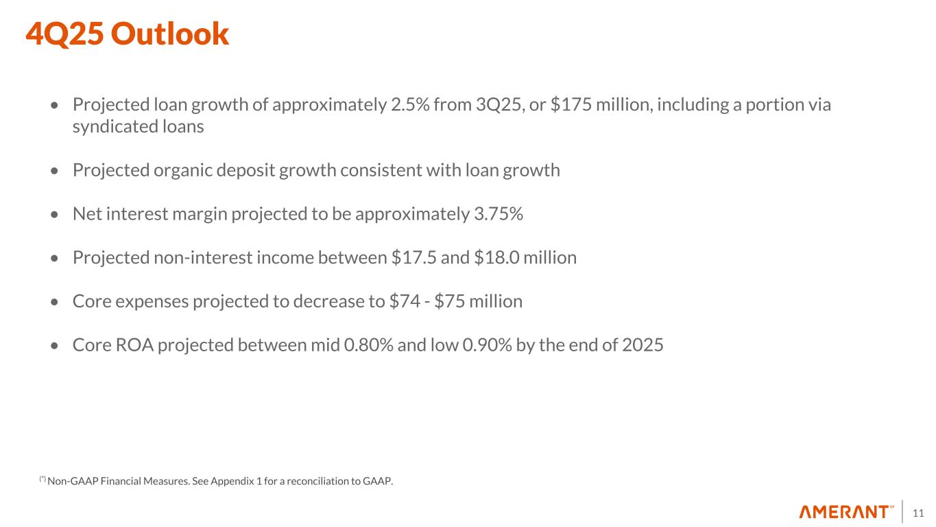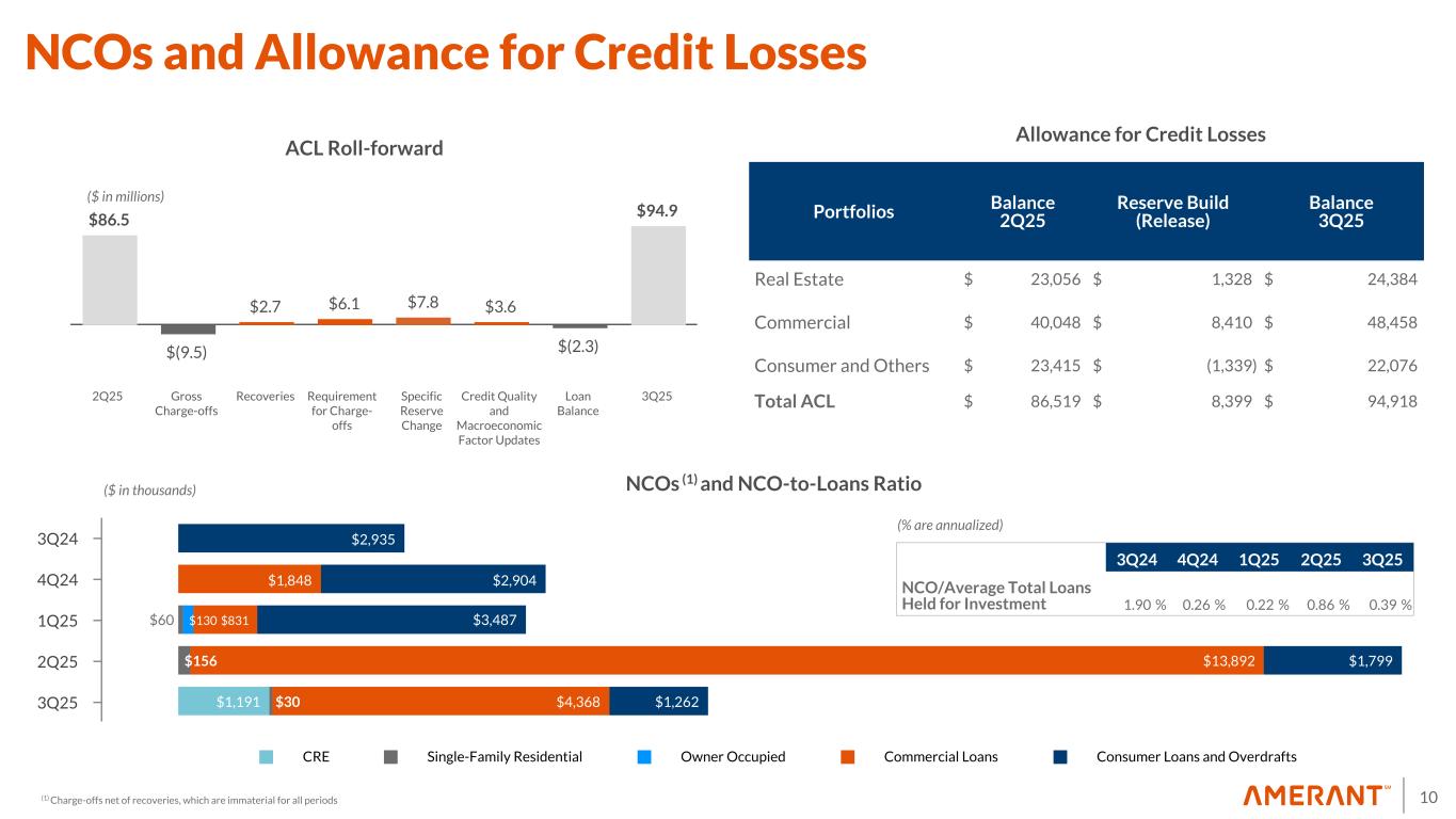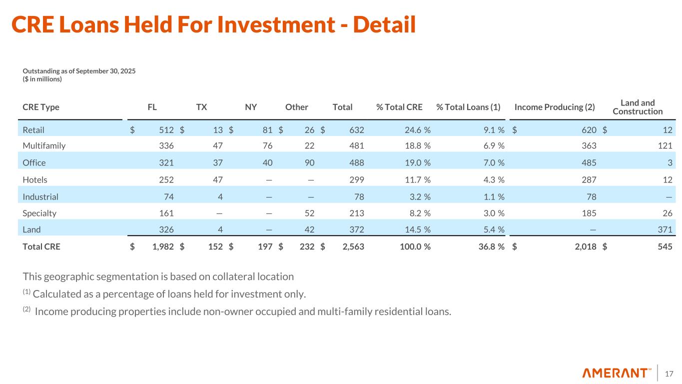 25 76.2 83.4 71.6 74.4 77.8 $35.0 $35.3 $33.3 $36.0 $35.1 $41.2 $48.1 $38.3 $38.4 $42.7 735 698 726 692 704 3Q24 4Q24 1Q25 2Q25 3Q25 0 25 50 75 100 Non-Interest Expense Mix ($ in millions, except for FTEs) Non-routine Noninterest Expenses 5.7 15.1 0.5 1.2 2.0 $2.5 $12.6 Other nonroutine noninterest expenses Loans held for sale valuation expense Amerant Mortgage downsize costs Losses on loans held for sale carried at the lower of cost or fair value Loss on sale of repossessed assets and other real estate owned valuation expense 3Q24 4Q24 1Q25 2Q25 3Q25 0 5 10 15 ($ in millions) Non-Interest Expense Salaries and employee benefits Other operating expenses FTEs $0.4 $0.8 $0.5 $0.9 $0.6
