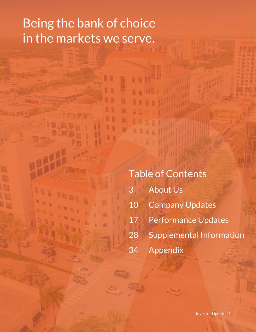 Being the bank of choice in the markets we serve. Table of Contents 3 About Us 10 Company Updates 17 Performance Updates 28 Supplemental Information 34 Appendix Investor Update | 1