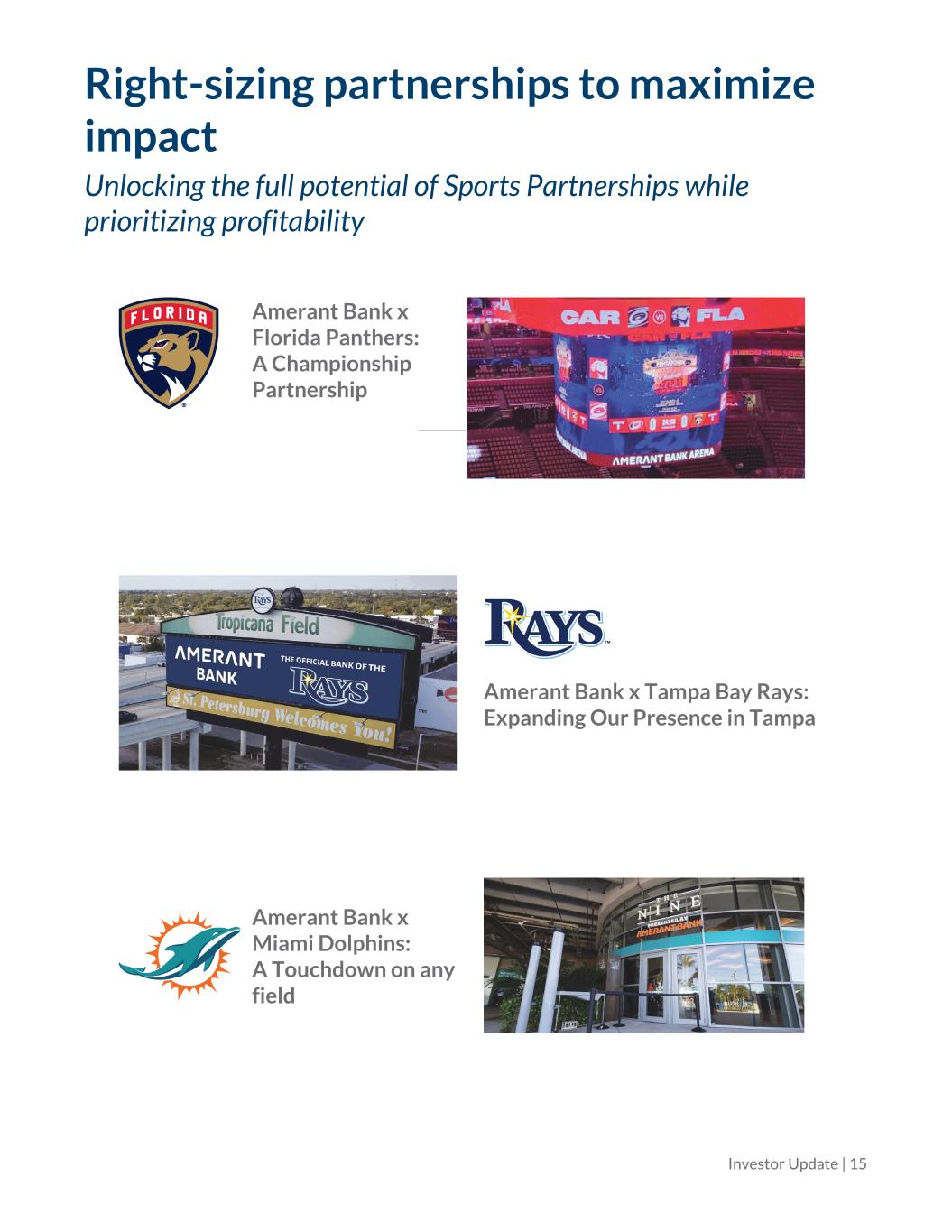 Right-sizing partnerships to maximize impact Unlocking the full potential of Sports Partnerships while prioritizing profitability Amerant Bank x Florida Panthers: A Championship Partnership Amerant Bank x Tampa Bay Rays: Expanding Our Presence in Tampa Amerant Bank x Miami Dolphins: A Touchdown on any field Investor Update | 15