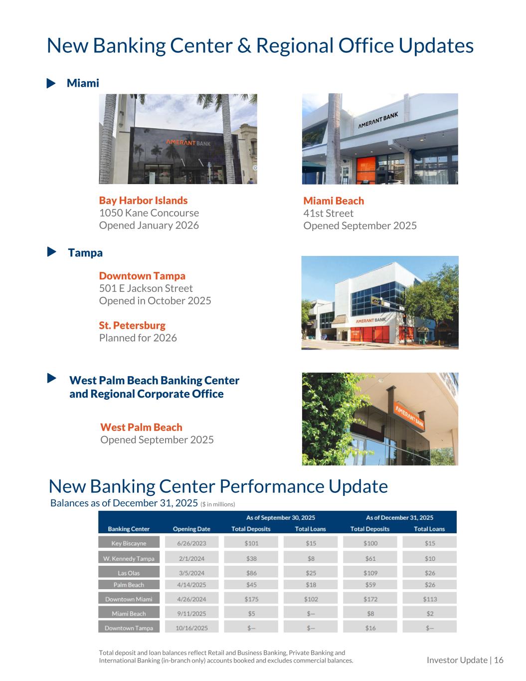 New Banking Center Performance Update Balances as of December 31, 2025 ($ in millions) New Banking Center & Regional Office Updates Investor Update | 16 Bay Harbor Islands 1050 Kane Concourse Opened January 2026 Tampa Downtown Tampa 501 E Jackson Street Opened in October 2025 St. Petersburg Planned for 2026 West Palm Beach Banking Center and Regional Corporate Office West Palm Beach Opened September 2025 Miami Miami Beach 41st Street Opened September 2025 Total deposit and loan balances reflect Retail and Business Banking, Private Banking and International Banking (in-branch only) accounts booked and excludes commercial balances.