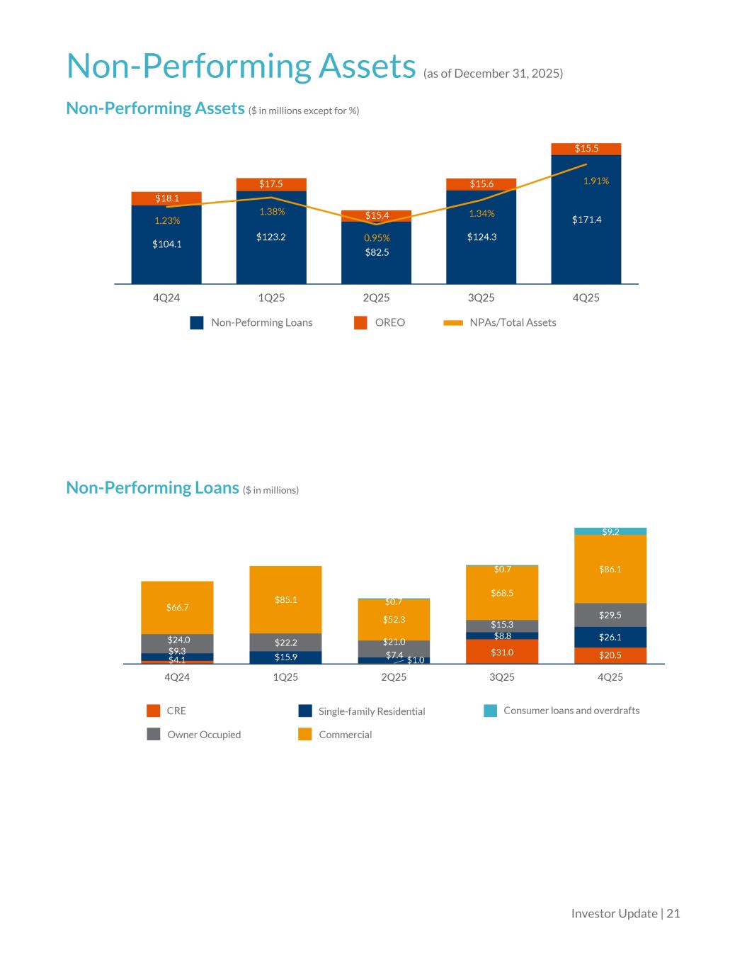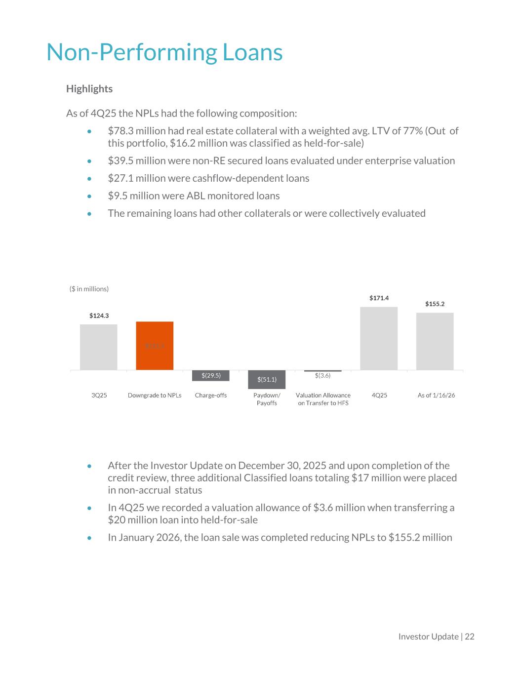 Non-Performing Assets (as of December 31, 2025) Non-Performing Assets ($ in millions except for %) Non-Performing Loans ($ in millions) Investor Update | 21