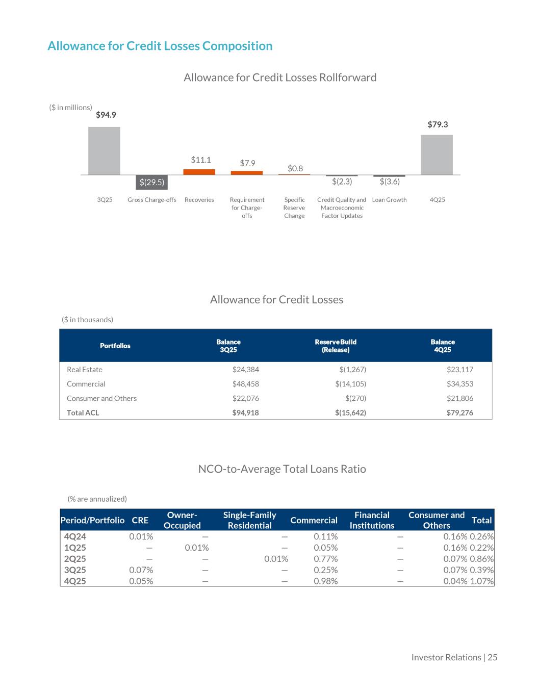 Allowance for Credit Losses Composition Investor Relations | 25 NCO-to-Average Total Loans Ratio (% are annualized) Allowance for Credit Losses Allowance for Credit Losses Rollforward ($ in millions) ($ in thousands)