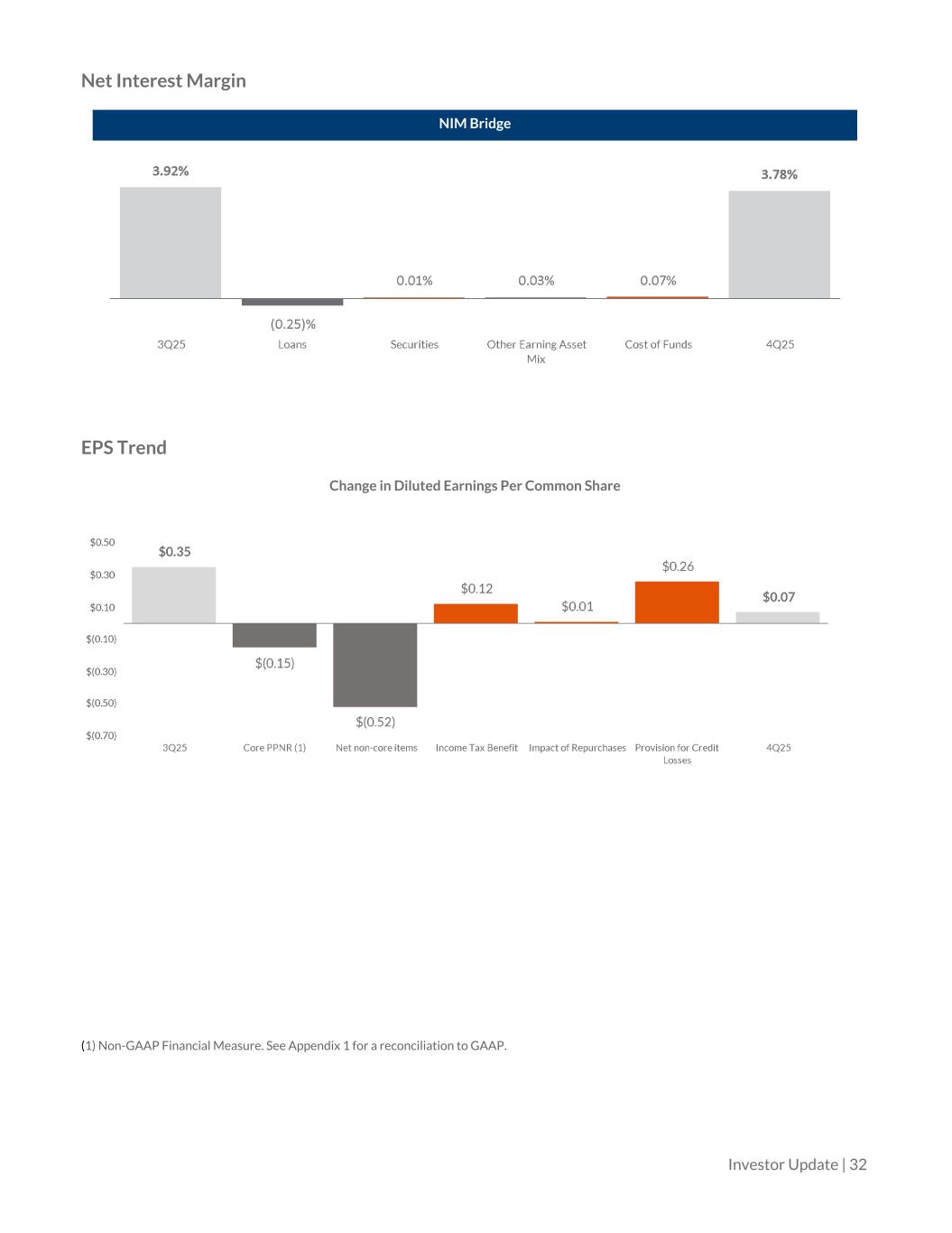Net Interest Margin NIM Bridge EPS Trend Change in Diluted Earnings Per Common Share (1) Non-GAAP Financial Measure. See Appendix 1 for a reconciliation to GAAP. Investor Update | 32