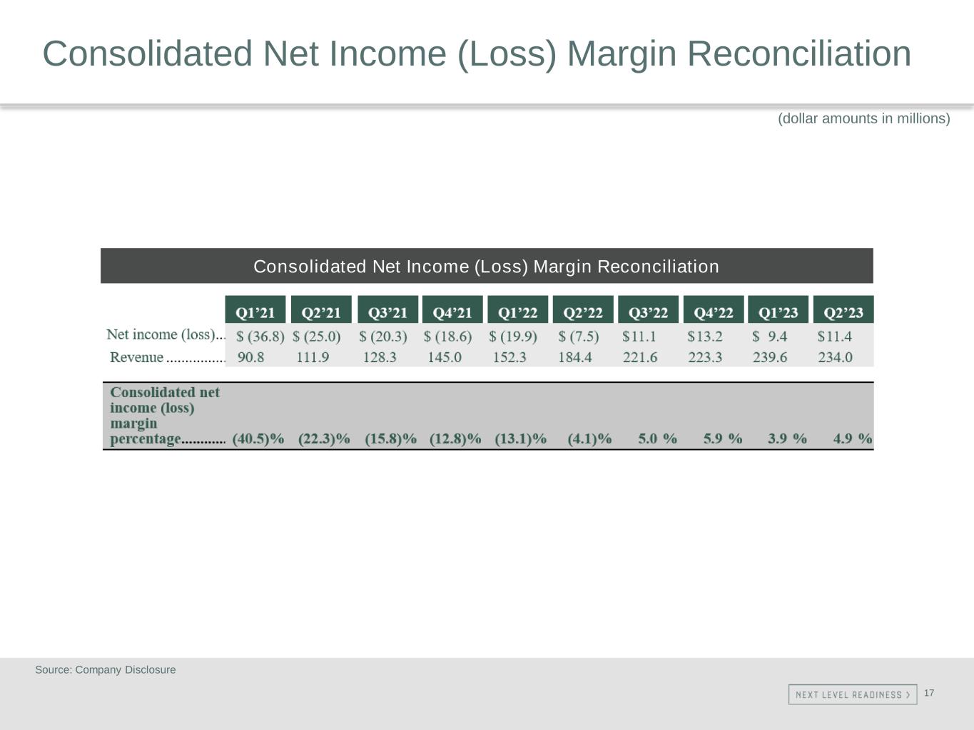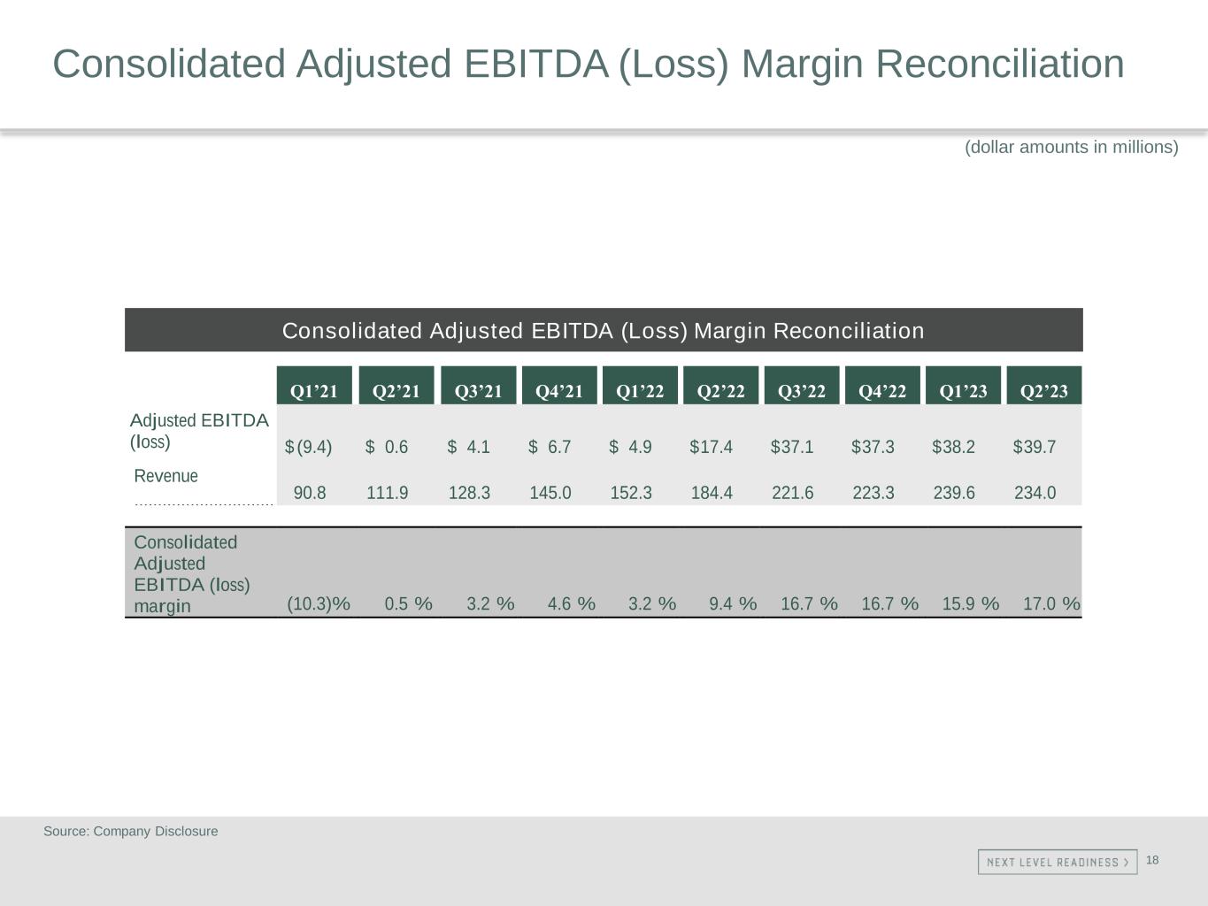 17 Consolidated Net Income (Loss) Margin Reconciliation Source: Company Disclosure Consolidated Net Income (Loss) Margin Reconciliation (dollar amounts in millions)