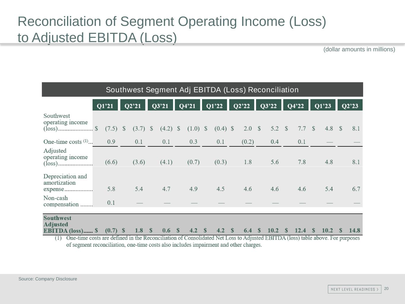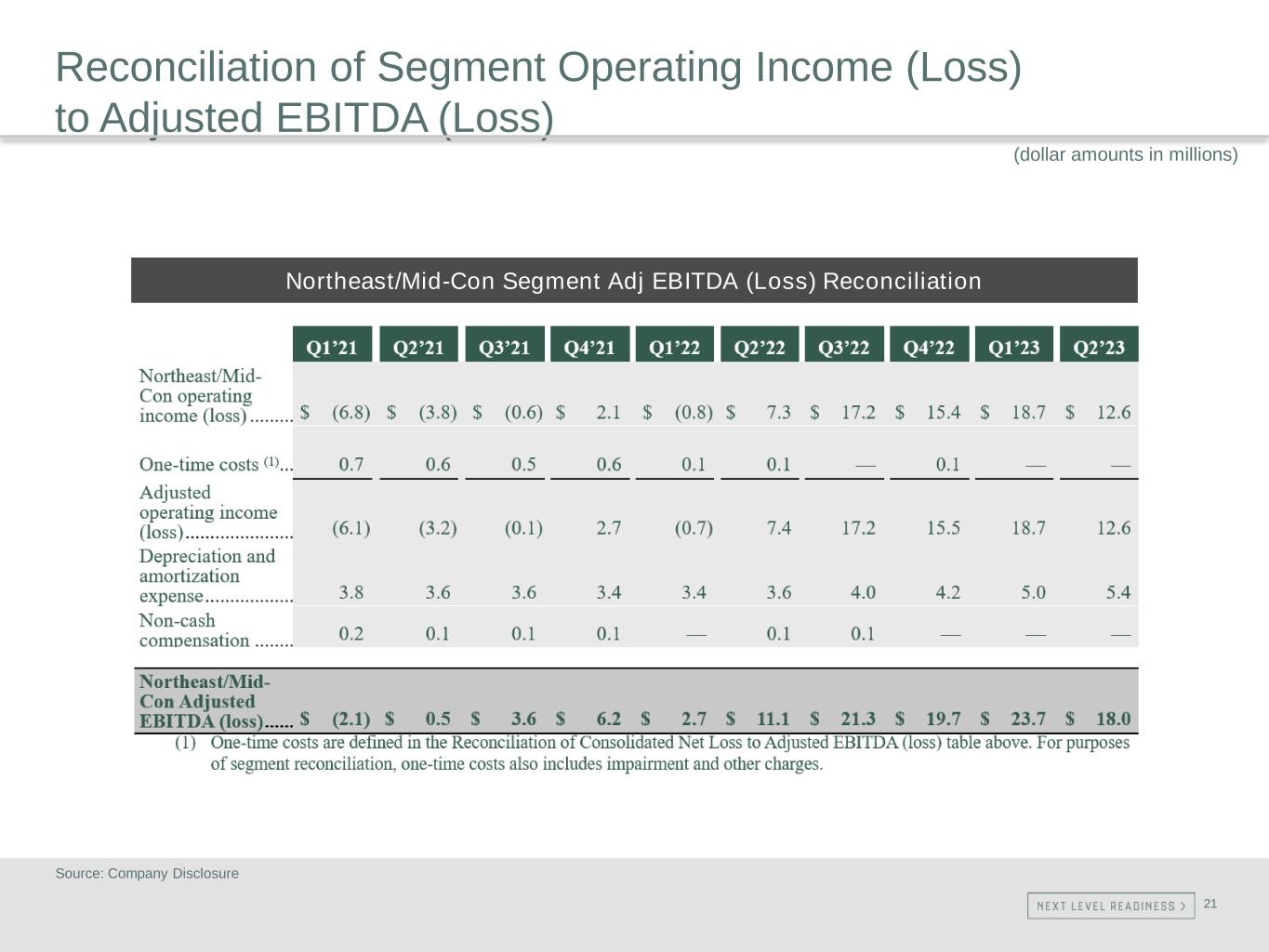 20 Reconciliation of Segment Operating Income (Loss) to Adjusted EBITDA (Loss) Source: Company Disclosure (dollar amounts in millions) Southwest Segment Adj EBITDA (Loss) Reconciliation