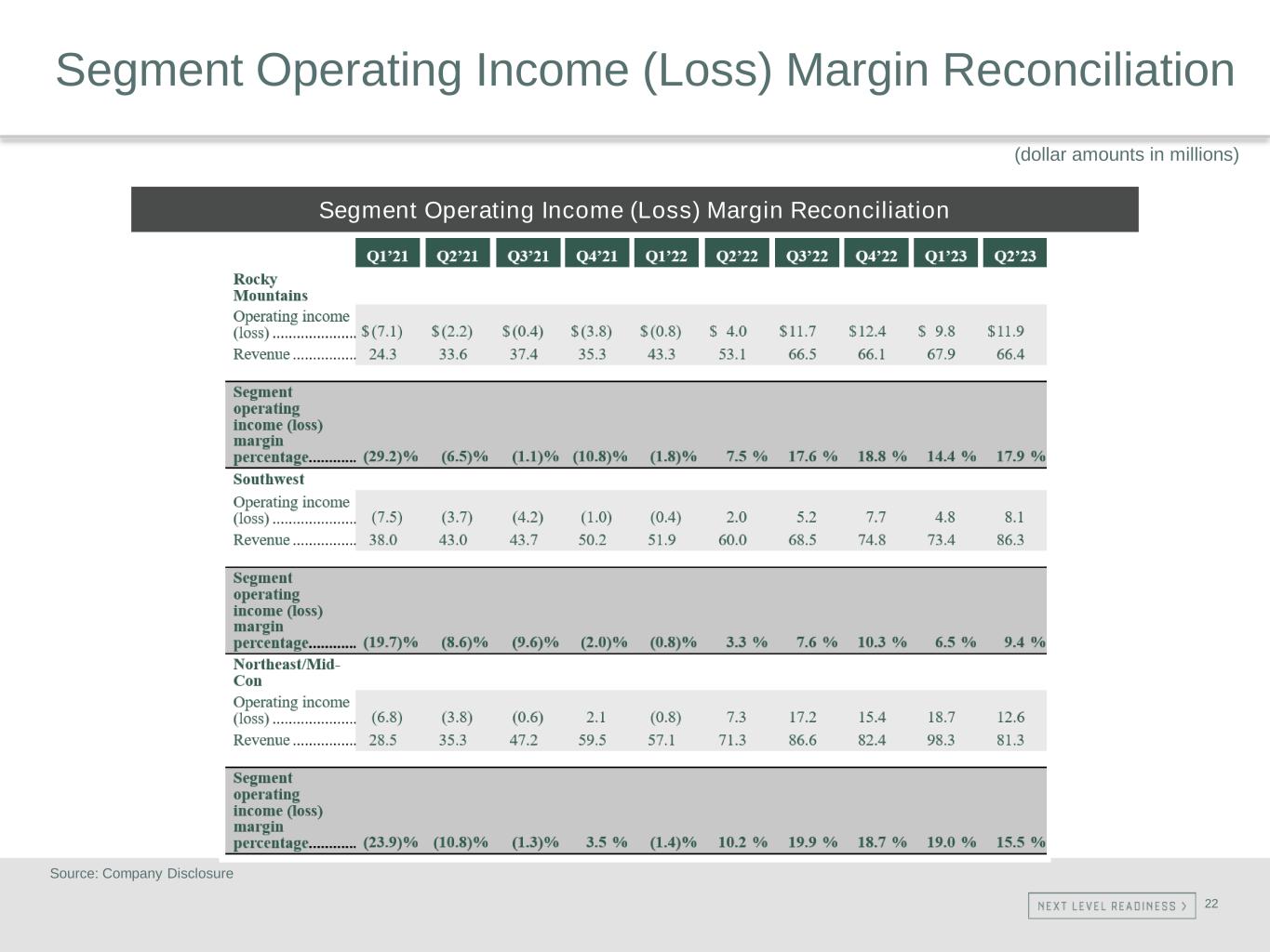 21 Reconciliation of Segment Operating Income (Loss) to Adjusted EBITDA (Loss) Source: Company Disclosure (dollar amounts in millions) Northeast/Mid-Con Segment Adj EBITDA (Loss) Reconciliation