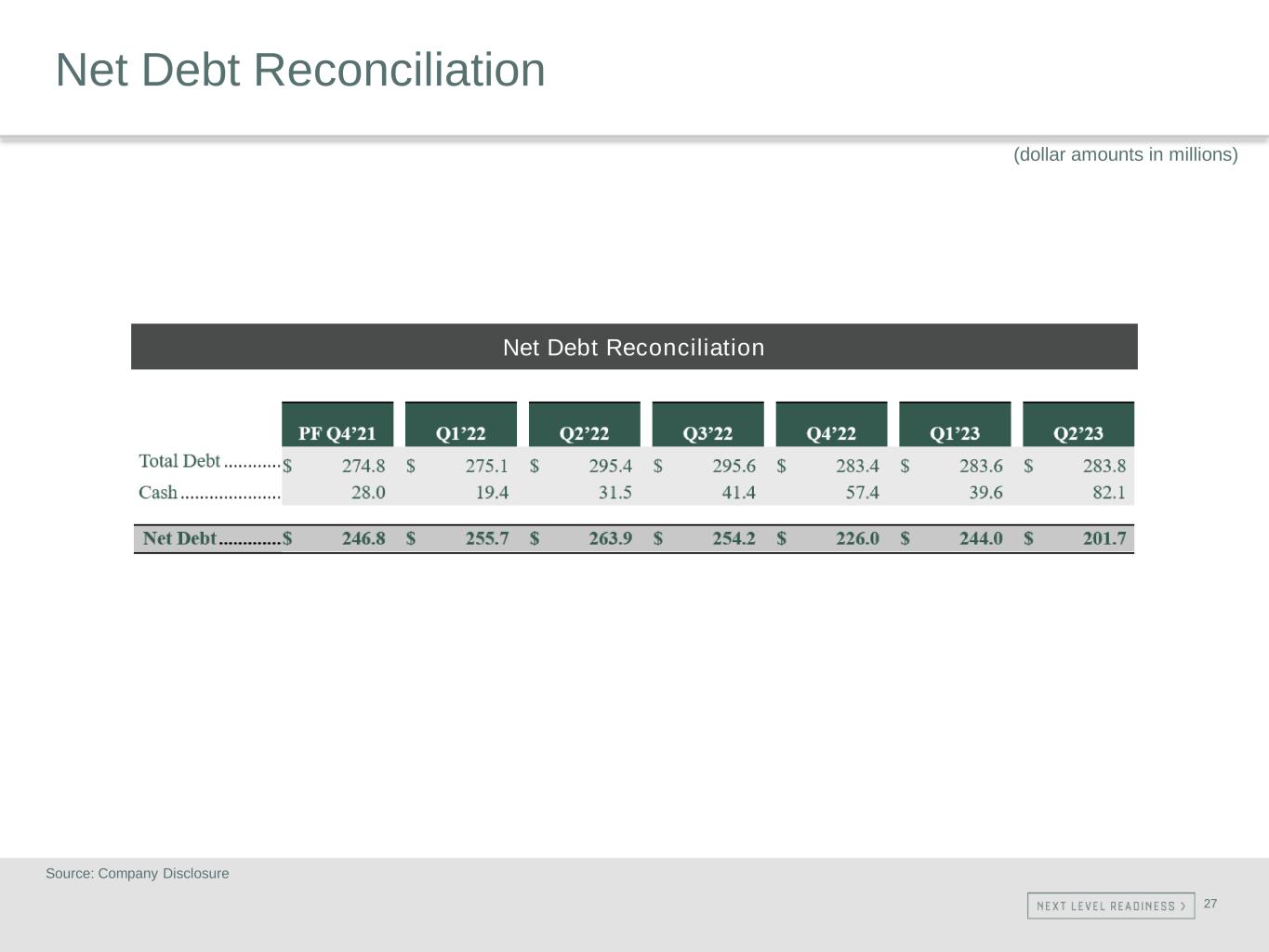 27 Net Debt Reconciliation Source: Company Disclosure Net Debt Reconciliation (dollar amounts in millions)