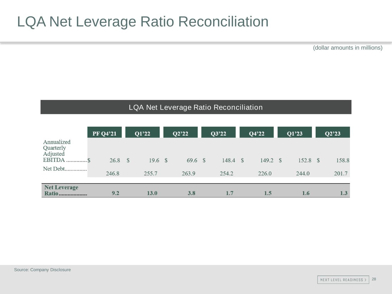 28 LQA Net Leverage Ratio Reconciliation Source: Company Disclosure LQA Net Leverage Ratio Reconciliation (dollar amounts in millions)