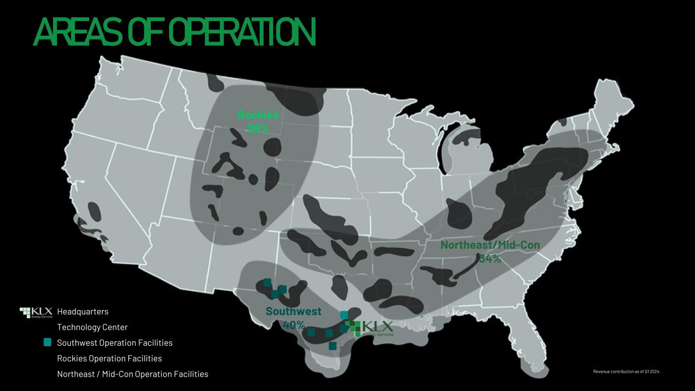 Rockies 26% Southwest 40% Northeast/Mid-Con 34% Headquarters Technology Center Southwest Operation Facilities Rockies Operation Facilities Northeast / Mid-Con Operation Facilities AREAS OF OPERATION Revenue contribution as of Q1 2024.