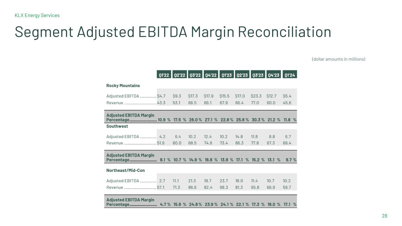 KLX Energy Services 28 Segment Adjusted EBITDA Margin Reconciliation (dollar amounts in millions)