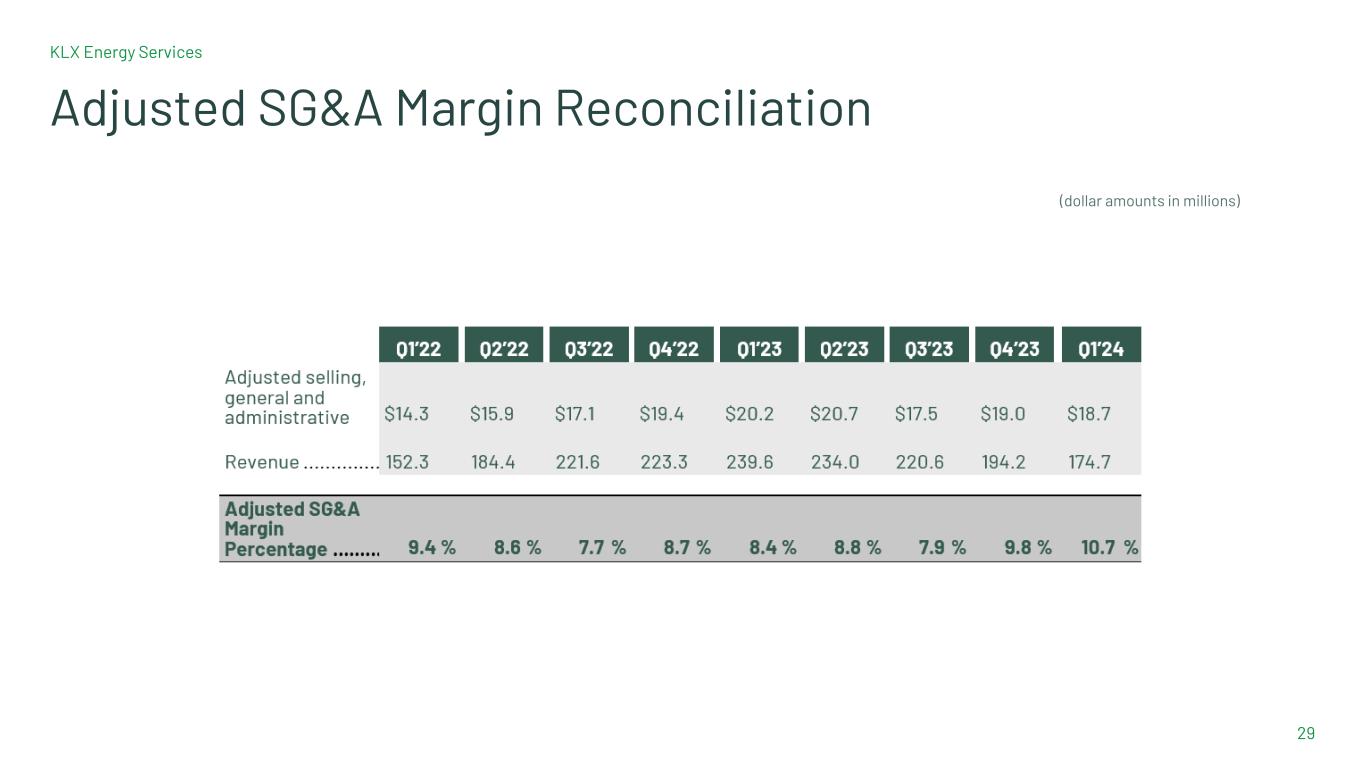 KLX Energy Services 29 Adjusted SG&A Margin Reconciliation (dollar amounts in millions)